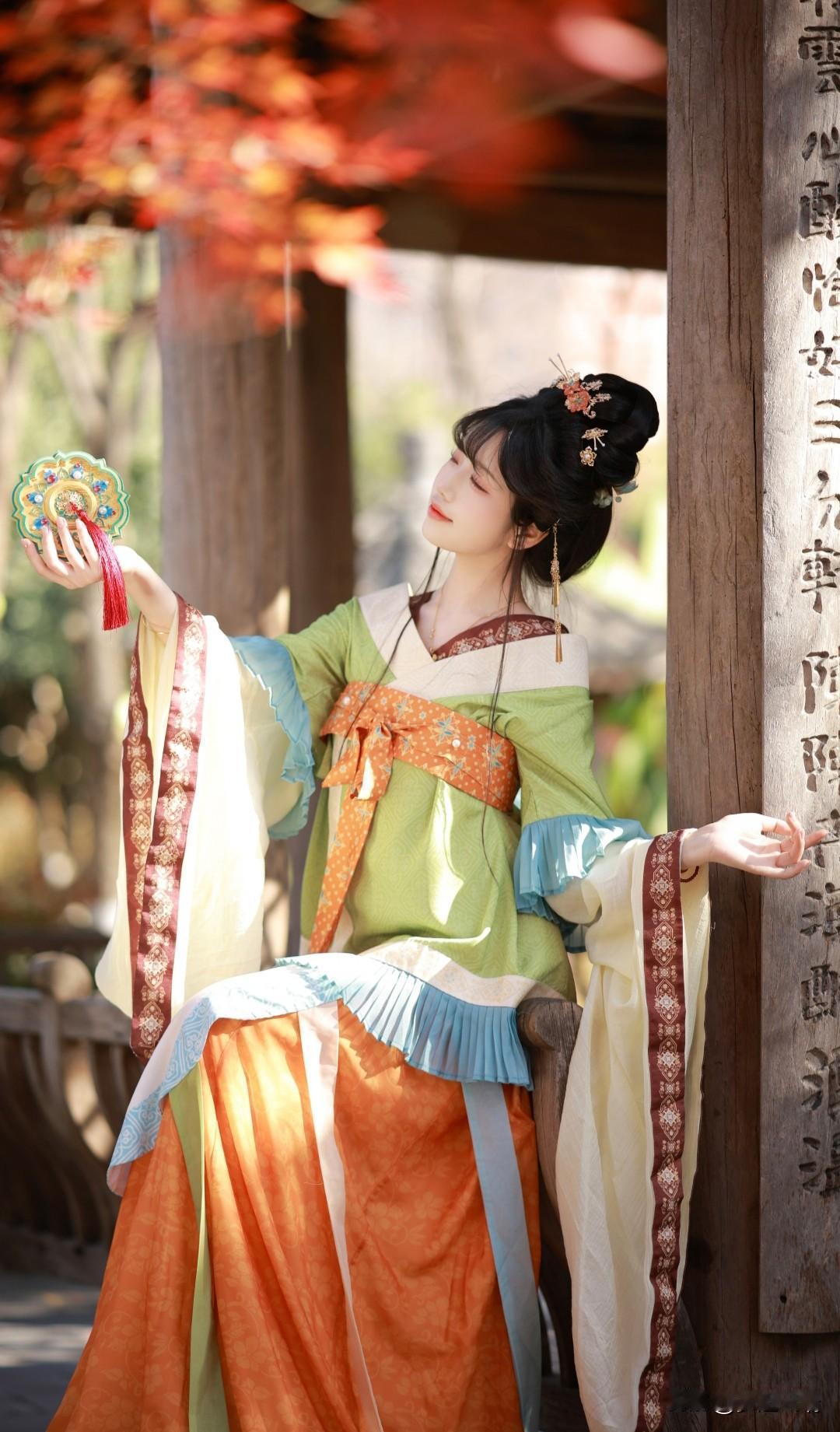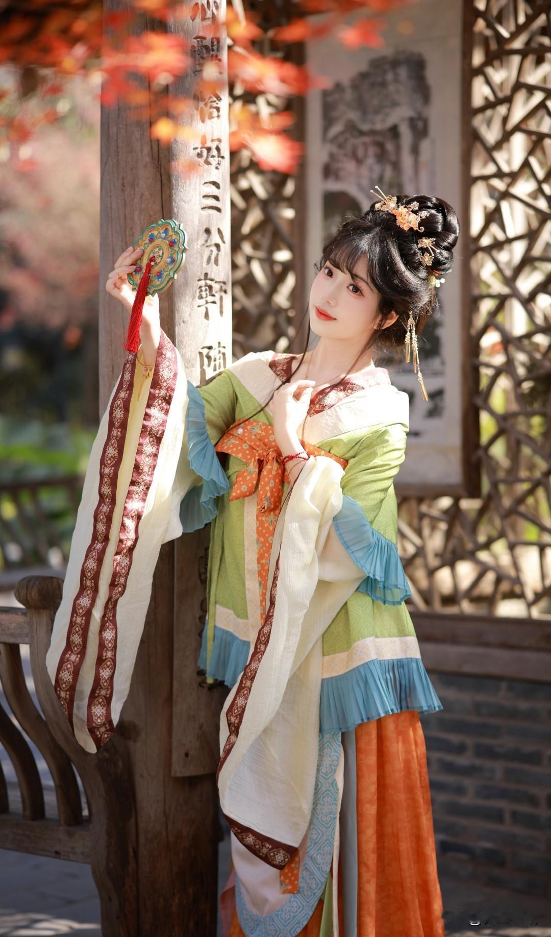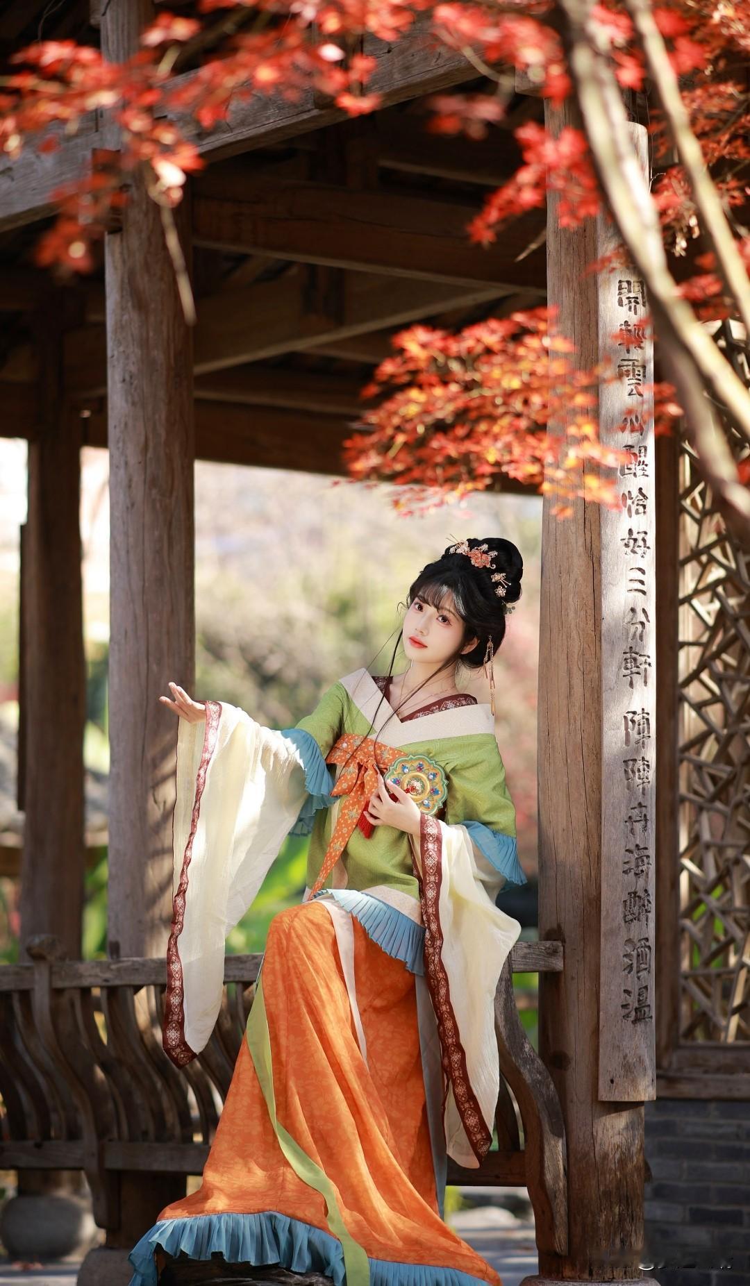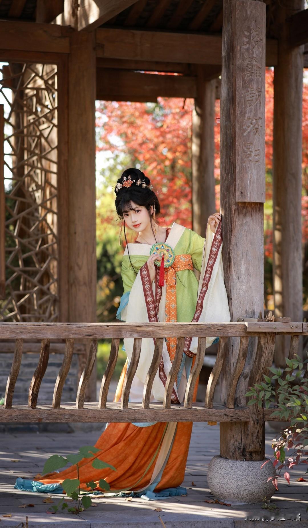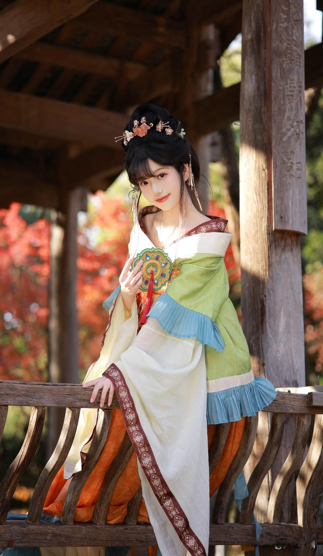 古典美人,一袭白衣,花枝招展,韵味十足。