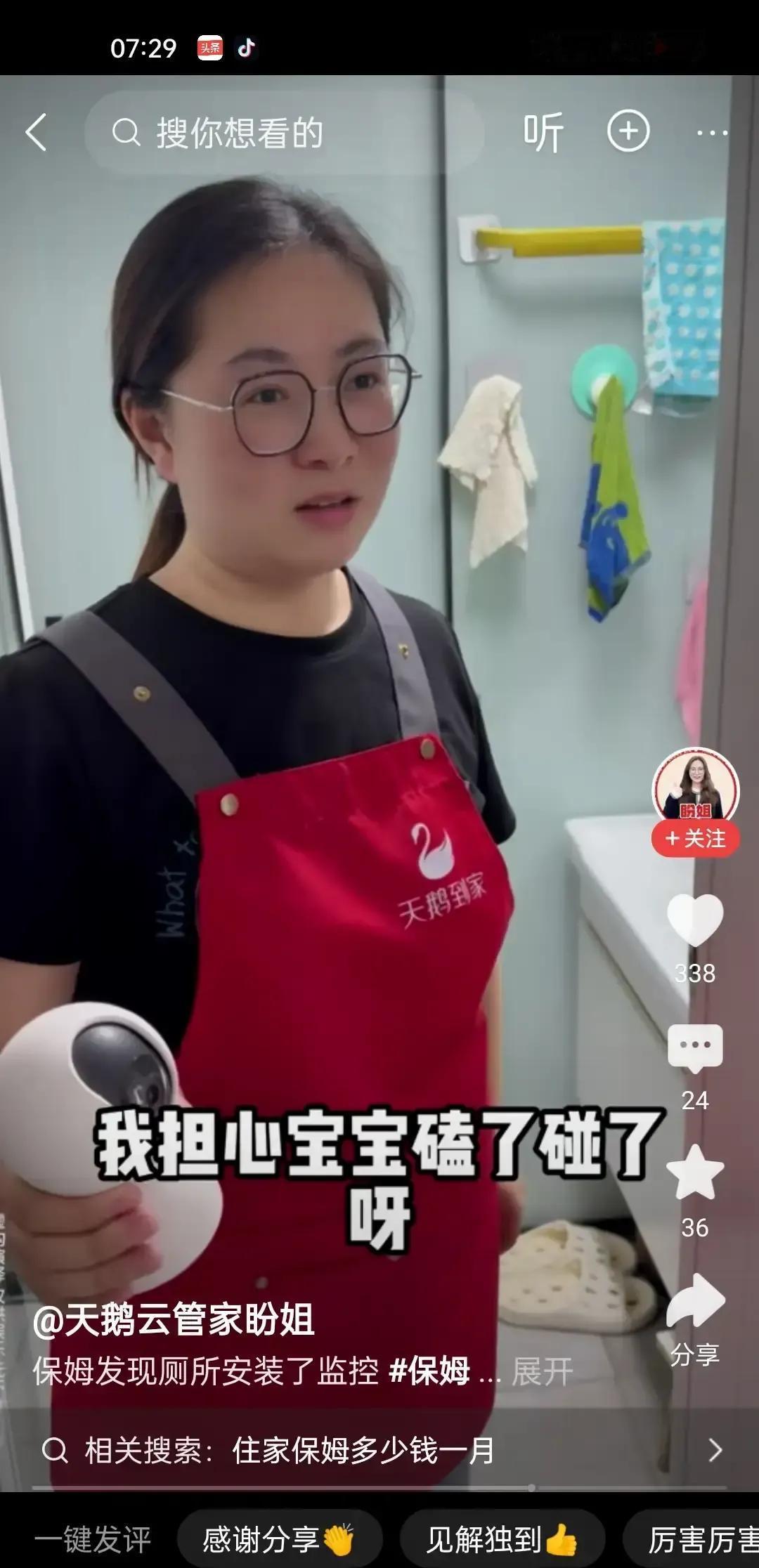 保姆在雇主家干活时发现厕所里藏着摄像头,直接拆下来质问:厕所也装监控干雇主支吾着说是怕孩子磕碰。保姆把场面拉到尴尬—卧室客厅我认了,厕所也要装?你是怕我偷你家拉屎吗?雇主面红耳赤,为了撑门面竟然硬回一句:对,就是怕你偷屎,你偷过没? 这事看似笑话,背后是信任崩塌。家用摄像头越来越普遍,但把隐私空间当成防线,只把安全建立在被监视上,等于用权力换安全。雇主用监控护娃,却把保姆当成潜在犯罪者,这不是防范,是羞辱。对雇佣关系的处理,靠的是明确规矩、合同和沟通,不是随手在厕所开摄像头。真正想保障孩子和家庭安全,先学会尊重对方的基本隐私和人格,而不是把家变成审讯室,让最脆弱的人承受羞辱和不信任。 素材来自网络,侵权联系删除