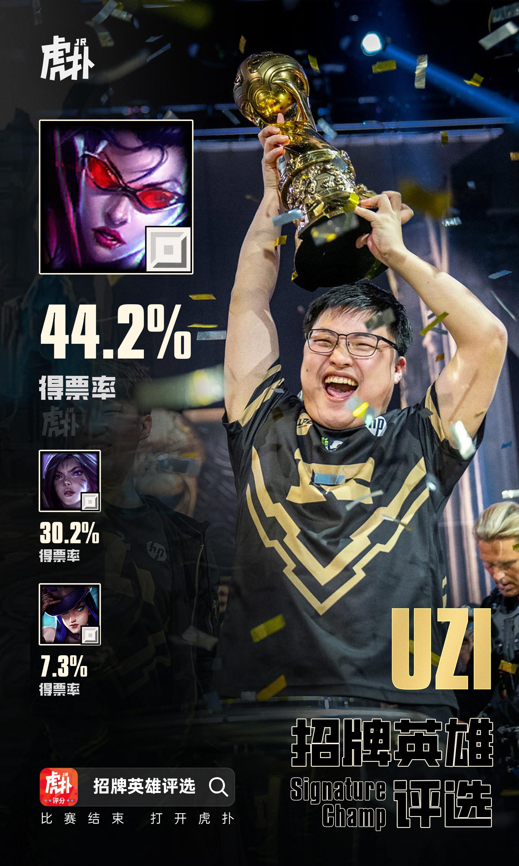 虎扑12月08日讯经过JRs昨日的评选,薇恩以44.2%得票率当选Uzi招牌英雄。