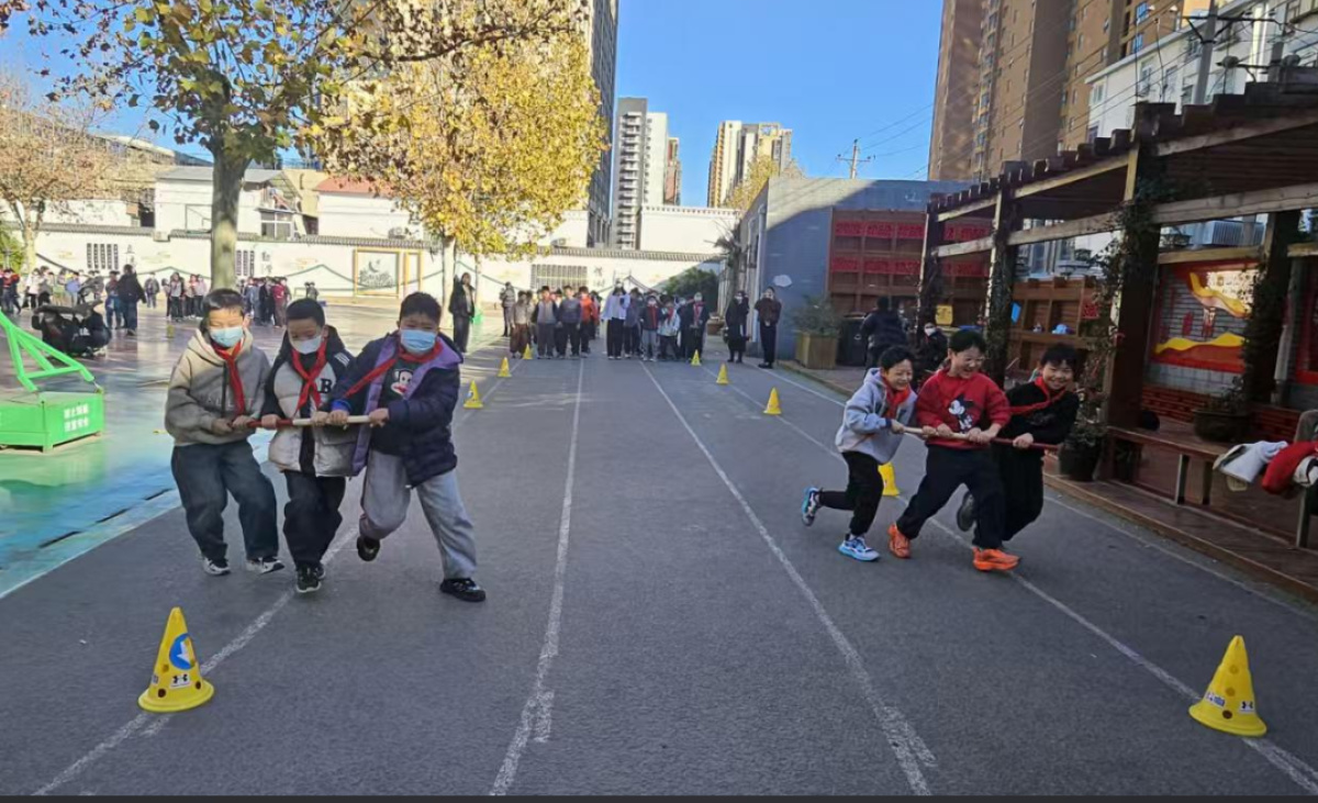 近日,郑州市管城回族区工人第二新村小学的操场上欢笑声此起彼伏,一场充满趣味与挑战的游戏比赛在此热烈开展。