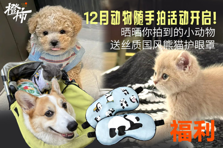 活动参与方式:在橙友圈#萌宠#话题下,带上标签#12月动物随手拍#发帖,晒一晒你镜头下拍到的可爱小动物,发帖满6次。