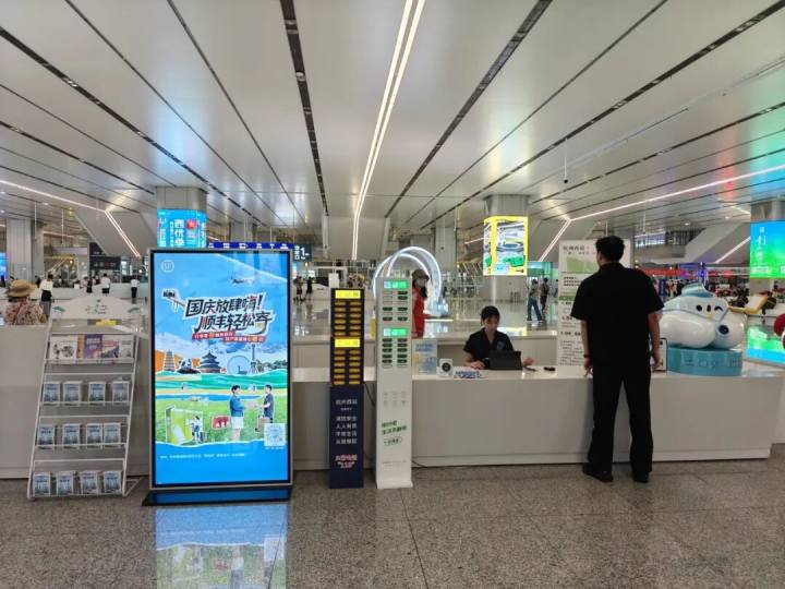 位置:杭州西站枢纽B1层旅游服务中心旁