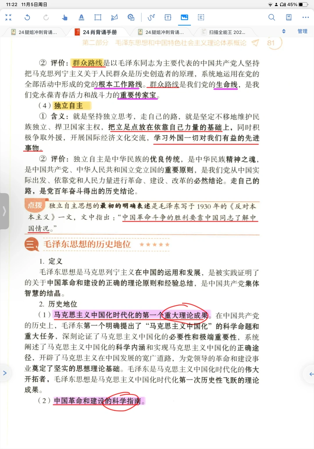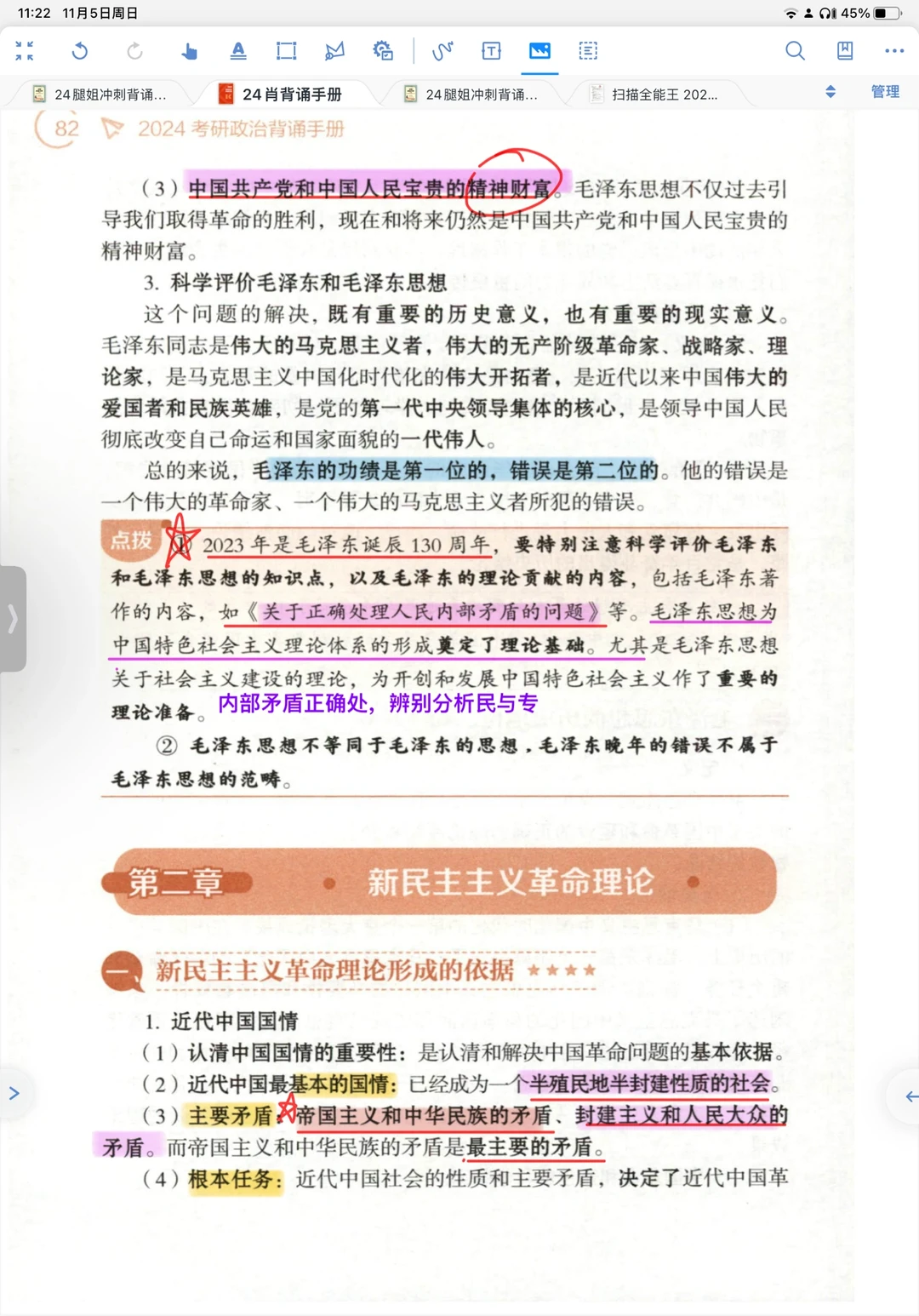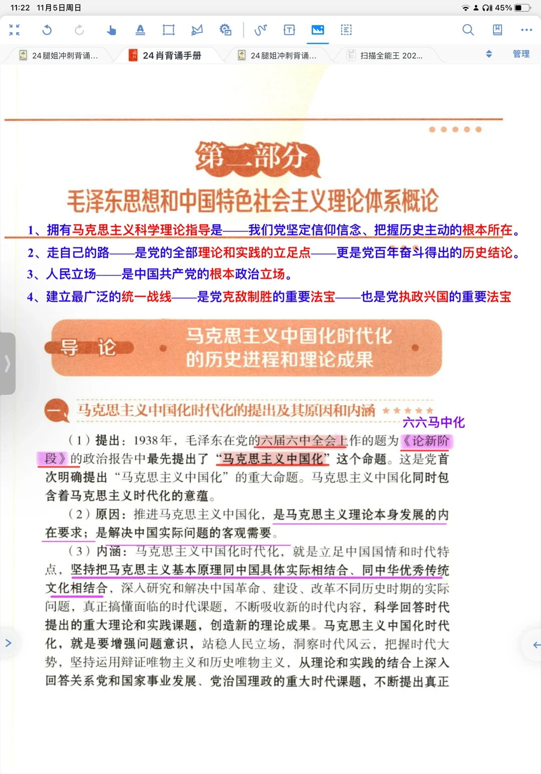 🌟整理【肖1000➕腿姐技巧班➕徐涛强化笔记】至肖秀荣冲刺背诵手册。 🌟毛中特:导论➕第一章+第二章 🌟P77—90 ⚠️大家学习完几章,可以刷题自测巩固一下知识点❗️