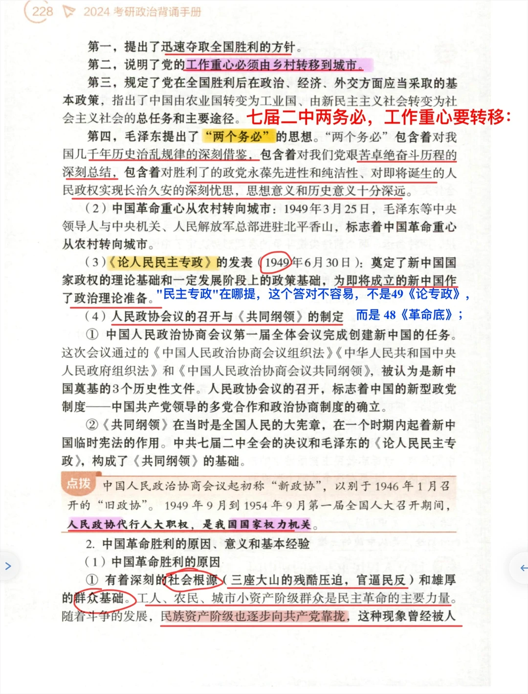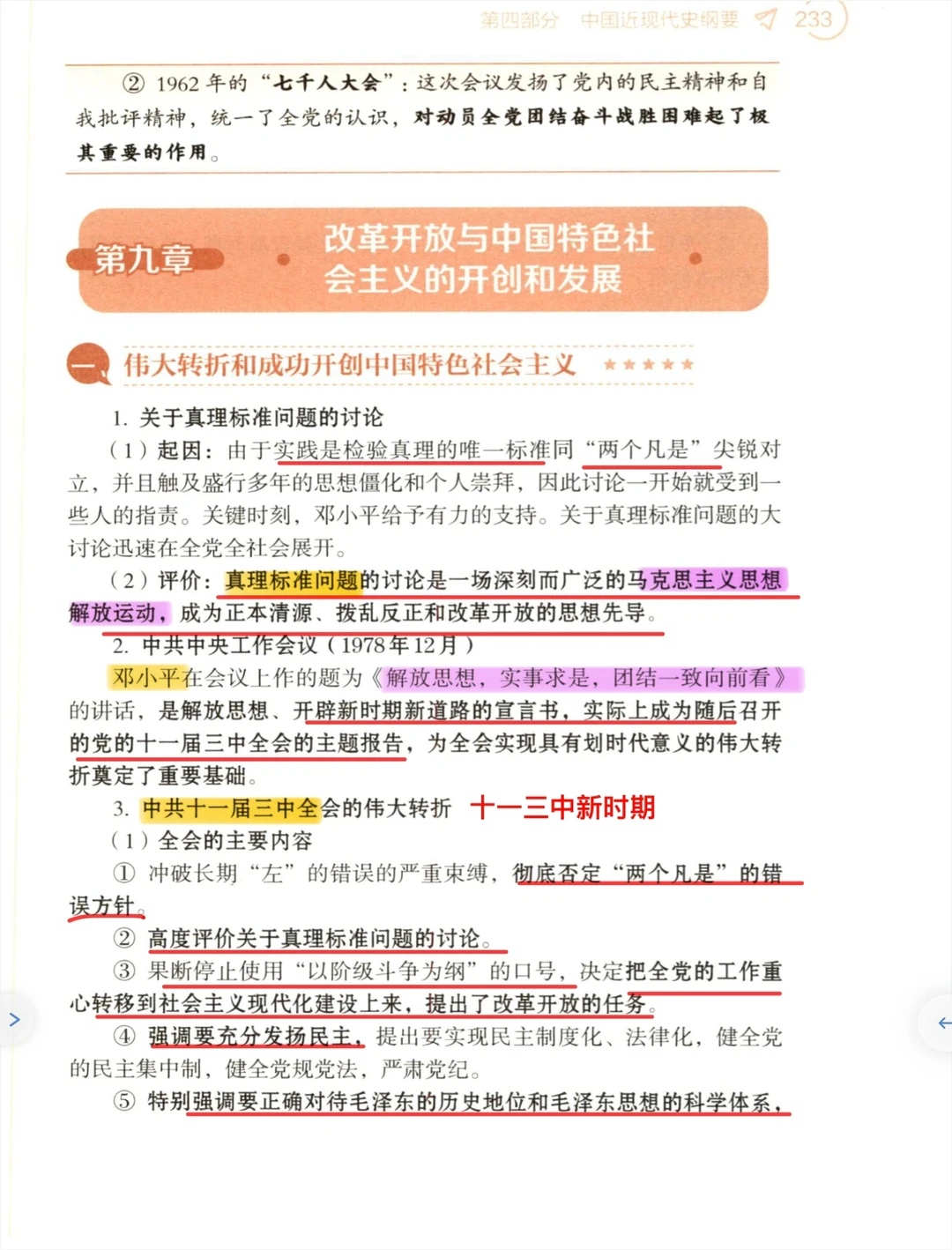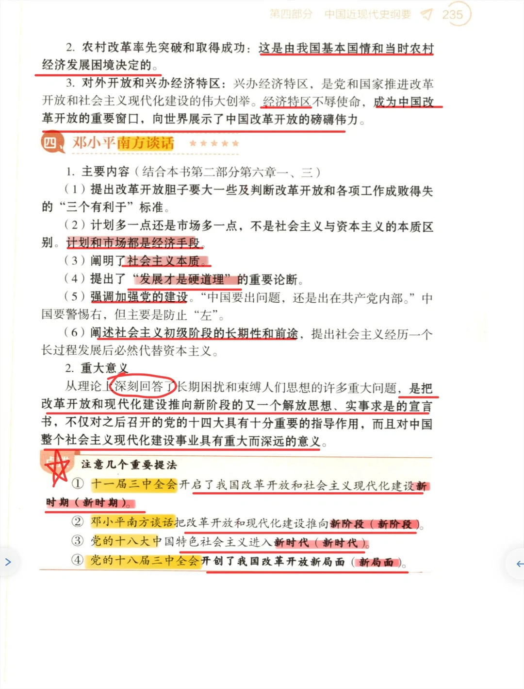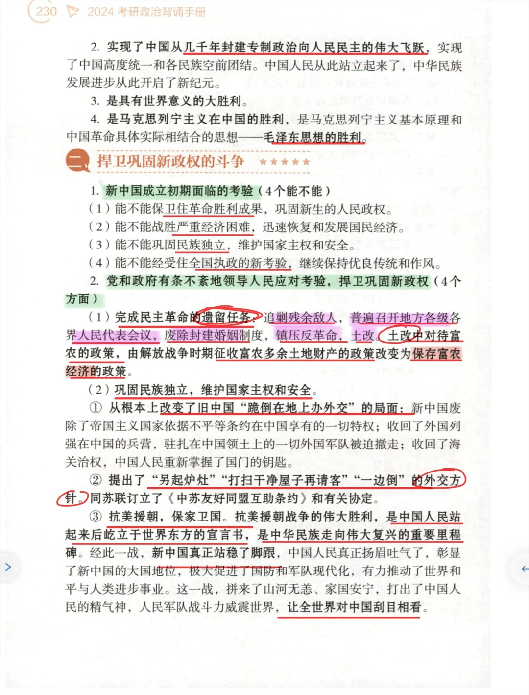 🌟整理【肖1000➕腿姐技巧班➕徐涛强化笔记】至肖秀荣冲刺背诵手册。 🌟史纲完结 第七章为建立新中国而奋斗 第八章中华人民共和国成立 第九章改革开放与中国特色社会主义开创和发展 第十章中国特色社会主义进入新时代 🌟P223—236 知识点📌大家学习完几章,记得刷题自测巩固一下知识点❗️