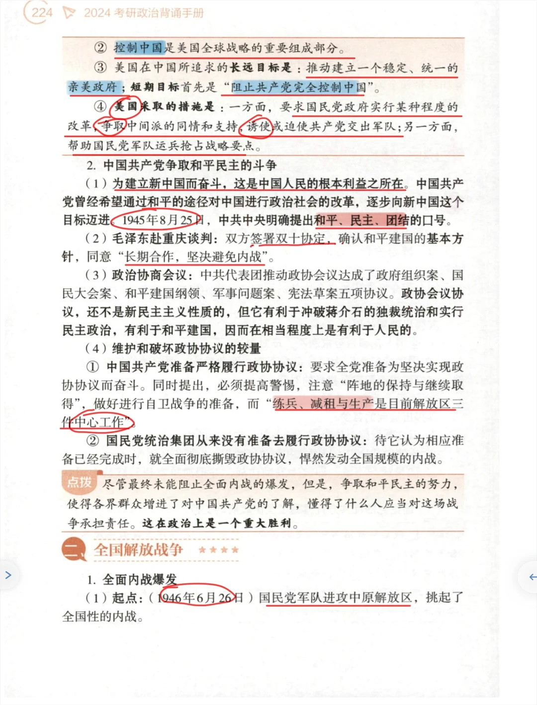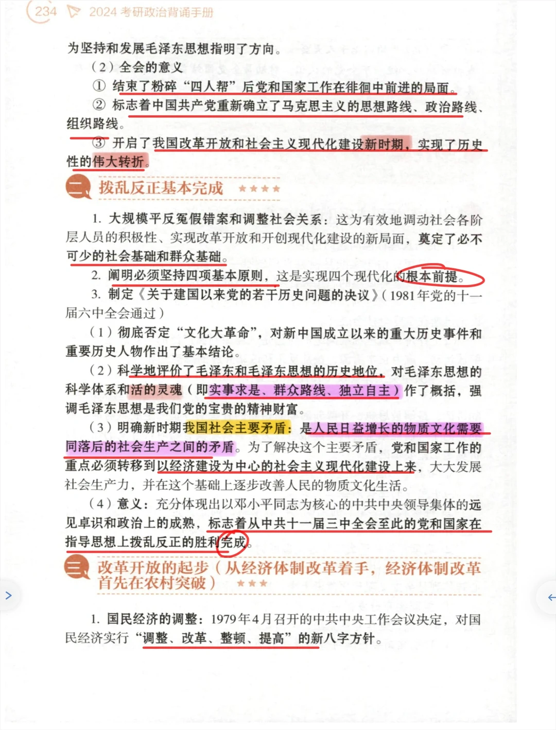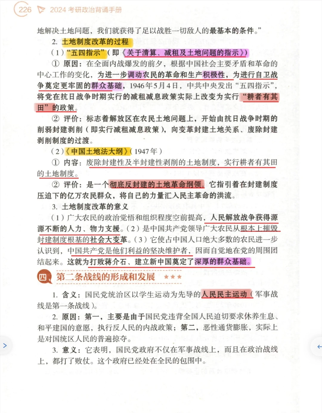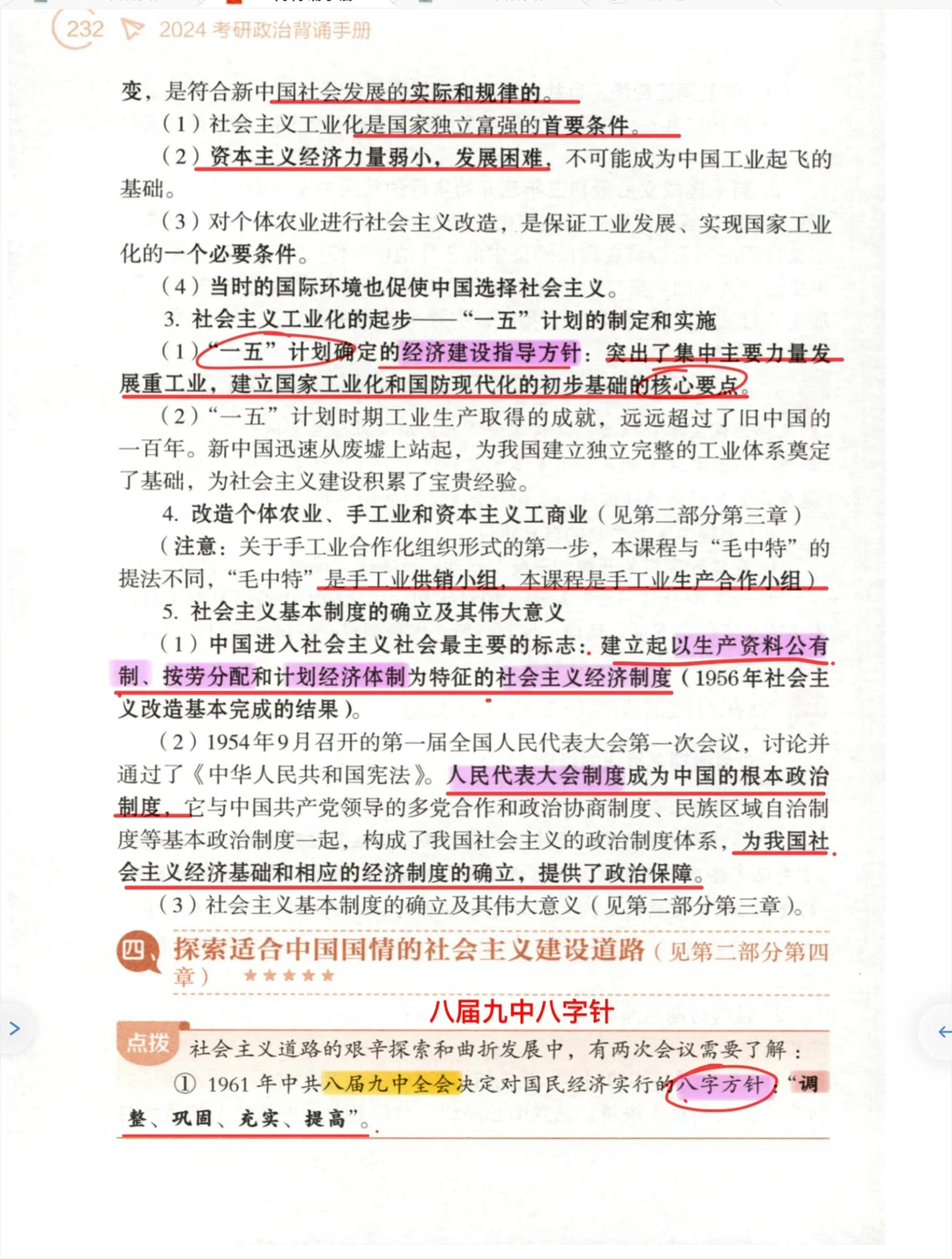 🌟整理【肖1000➕腿姐技巧班➕徐涛强化笔记】至肖秀荣冲刺背诵手册。 🌟史纲完结 第七章为建立新中国而奋斗 第八章中华人民共和国成立 第九章改革开放与中国特色社会主义开创和发展 第十章中国特色社会主义进入新时代 🌟P223—236 知识点📌大家学习完几章,记得刷题自测巩固一下知识点❗️