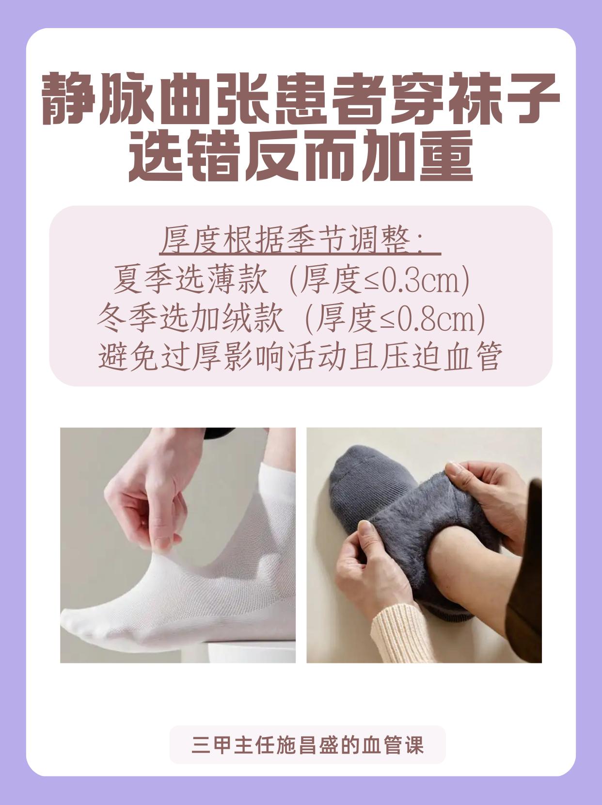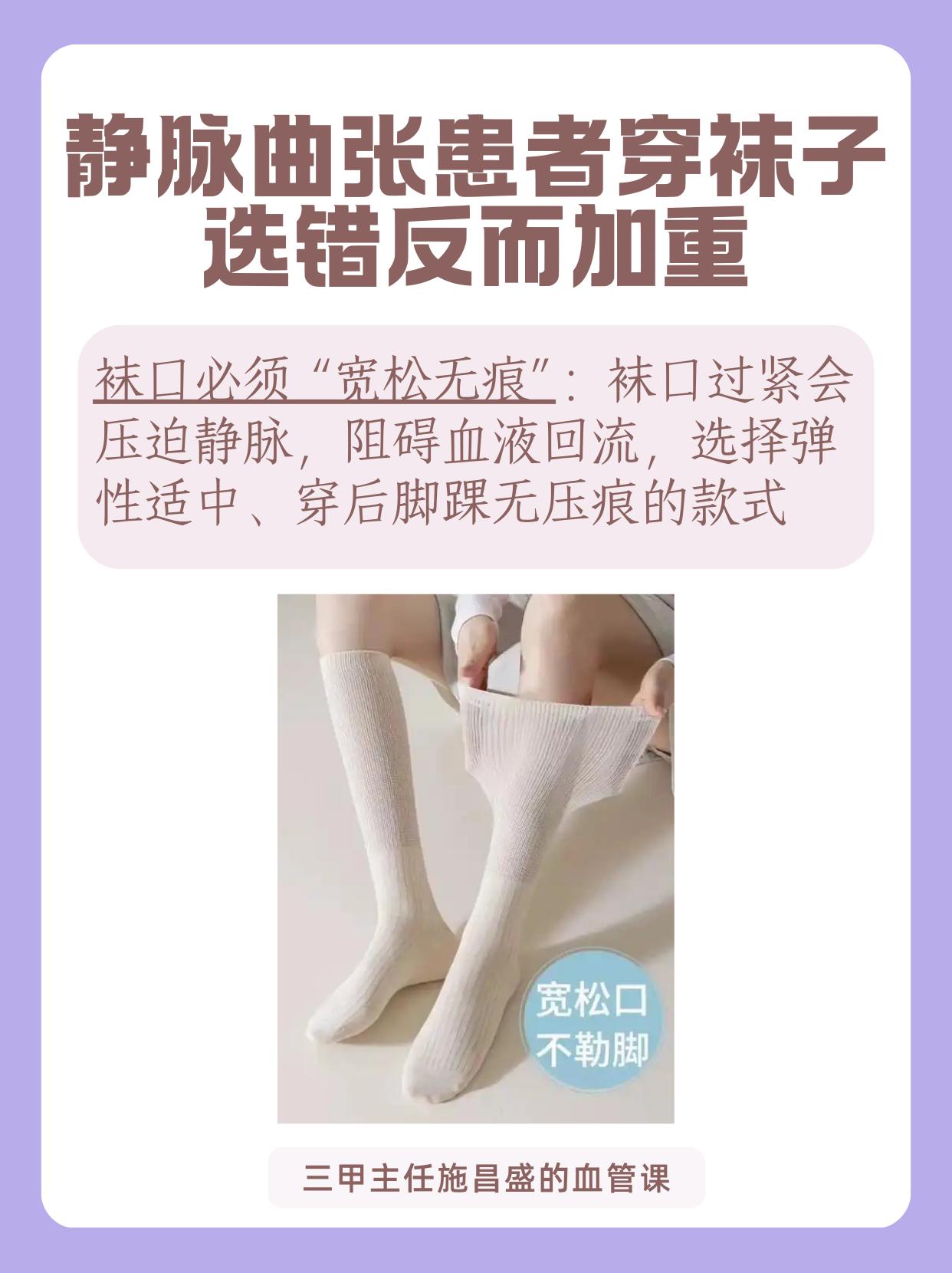 静脉曲张患者穿袜子选错反而加重。袜子选择对静脉曲张患者至关重要,3 个...