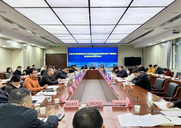 本网讯(通讯员刘建元)为深入贯彻落实国家“双减”工作决策部署,推动我市校外培训治理工作走深走实,12月5日,市教育局组织召开《长沙市规范校外培训机构发展的若干措施》政策解读培训会。市教育局杨庆江副局长出席会议并讲话。各区县(市)教育局分管校外培训监管工作的副局长,培管科(处)及审批科(处)室负责人,市科技局、市文旅广电局、市体育局相关业务处室负责人,以及各区县(市)科技局、文旅广体局相关科(处)负责人参加会议。