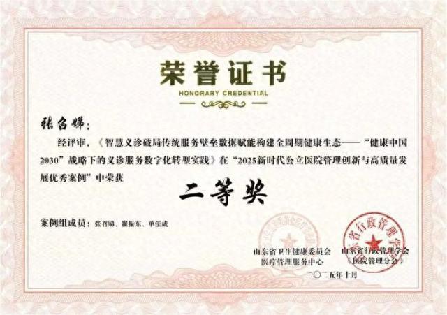 12月6日,山东省卫生健康委员会医疗管理服务中心、山东省行政管理学会联合公布2025年度新时代公立医院管理创新与高质量发展优秀案例评审结果。
