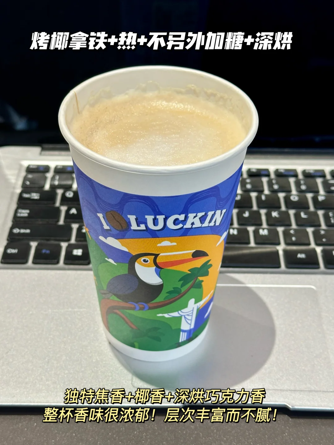 5️⃣烤椰拿铁+热+不另外加糖+深烘