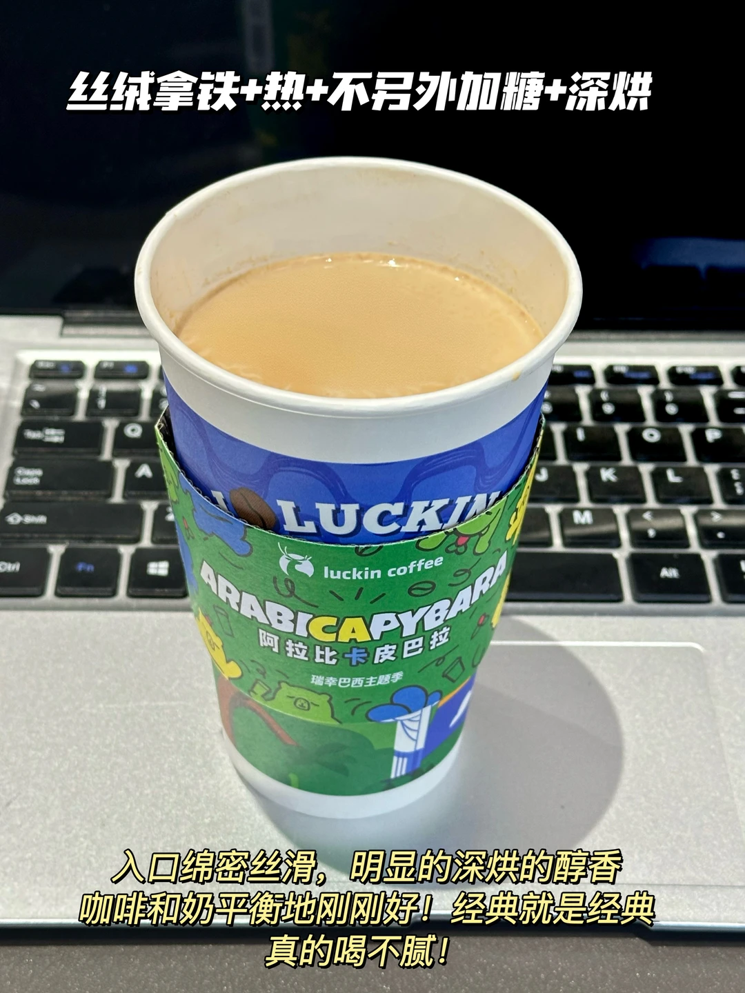 4️⃣丝绒拿铁+热+不另外加糖+深烘