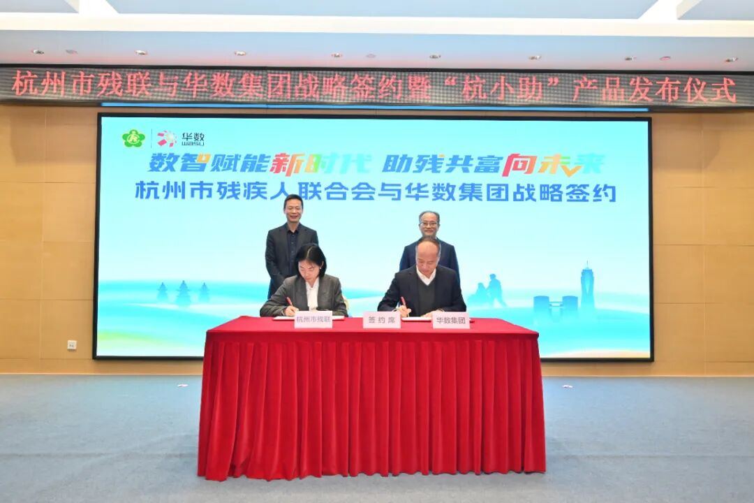 12月5日,杭州市残联与华数集团战略签约暨“杭小助”产品发布仪式在华数数字电视产业园成功举办。省残联党组成员、副理事长顾艳,市残联党组书记、理事长丁炯,华数集团党委书记、董事长陆政品等领导出席,浙江省残联、杭州市残联、杭州市数据局、杭州市滨江区残联、华数集团相关负责人以及残疾人代表、相关协会代表等参加本次活动。