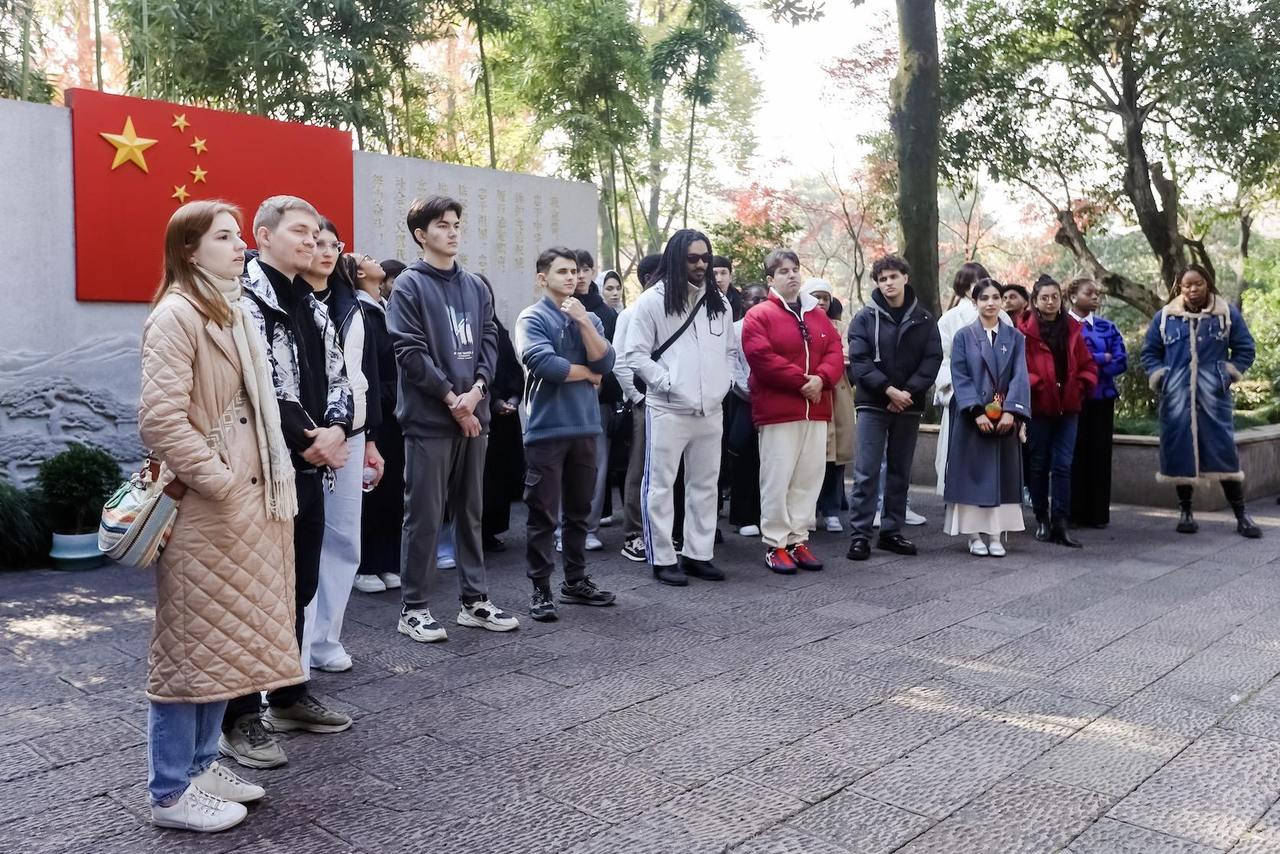 为打破宪法学习的传统模式,活动创新设计“学宪之路——走读宪法”环节,呼应宪法宣传周“让宪法贴近群众、贴近生活”的倡导。留学生们以3-5人组队,沿西湖岸线从北山街徒步前往栖霞岭馆区,沿途经岳王庙、黄宾虹旧居等人文景点,在志愿者引导下解读宪法与历史文化保护的关联——从宪法第二十二条“国家保护名胜古迹、珍贵文物”条款,到良渚文化申遗背后的法治保障,让宪法知识与湖光山色融为一体。走在西湖边学宪法,感觉宪法不是书本上的文字,而是保护这些美好事物的“规则”。留学生们在栖霞岭馆区参观了《宪法在我们身边》主题展览,观看纪录片《新中国第一部宪法诞生记》。
