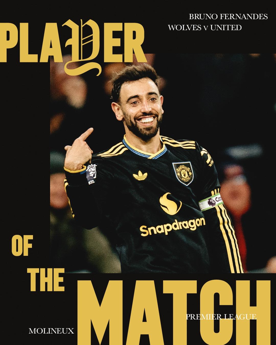 赛后,曼联官方宣布B费当选本场比赛队内最佳球员。