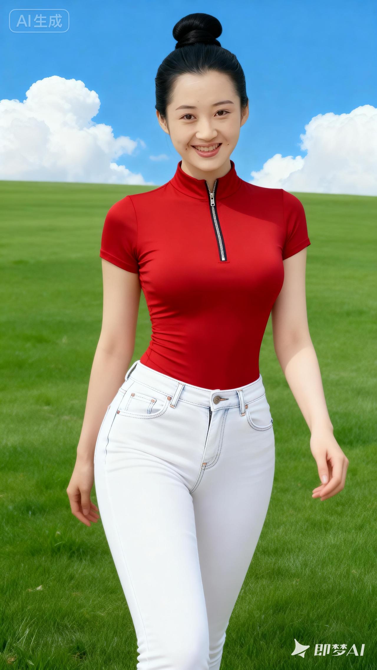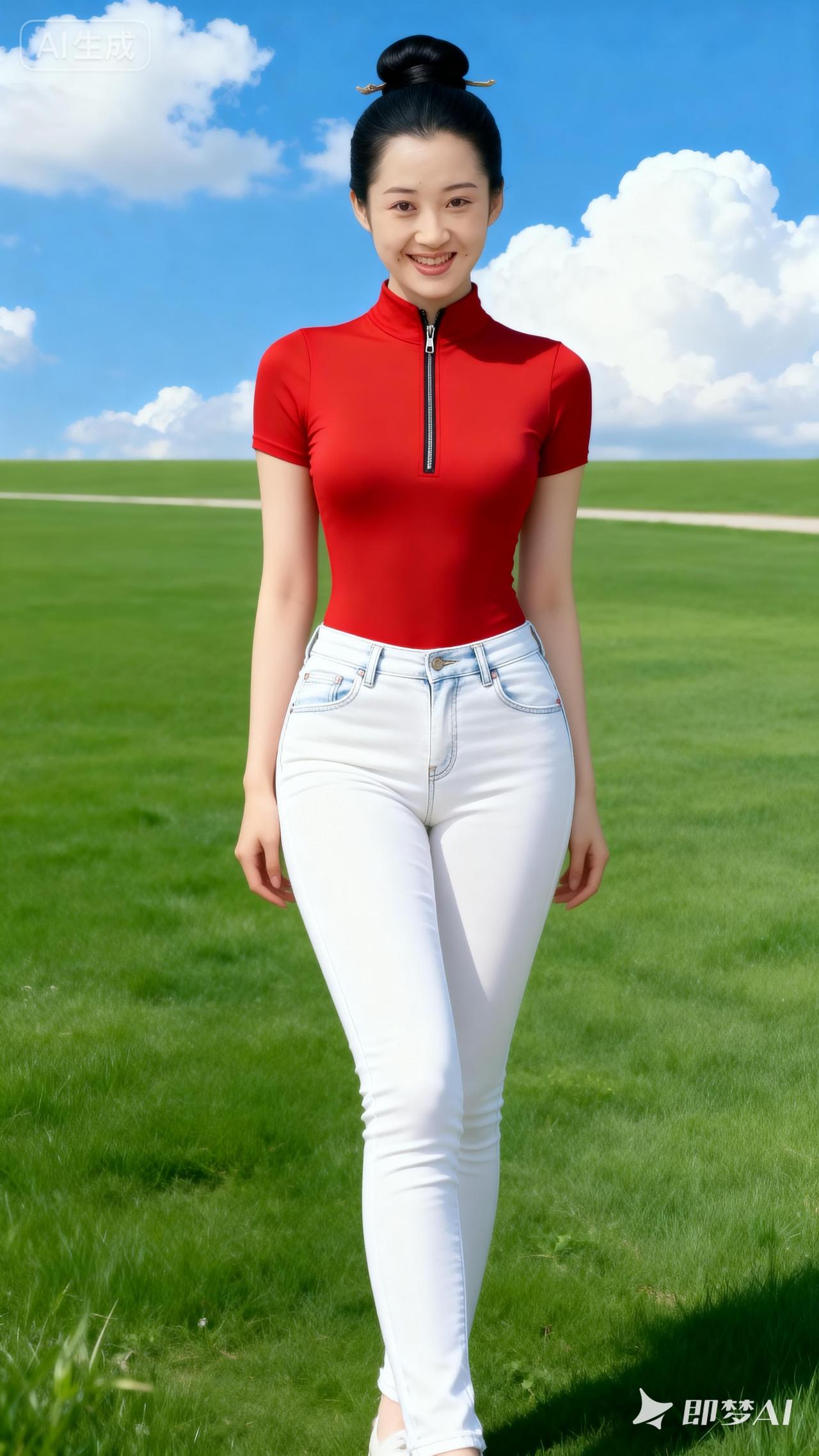 夏日清新穿搭,红色上衣+白色牛仔裤,活力满满!🌞👗👖