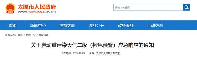 为此,太原市生态环境保护委员会办公室从12月10日0时启动太原市重污染天气二级(橙色预警)应急响应,同时提醒市民做好健康防护。