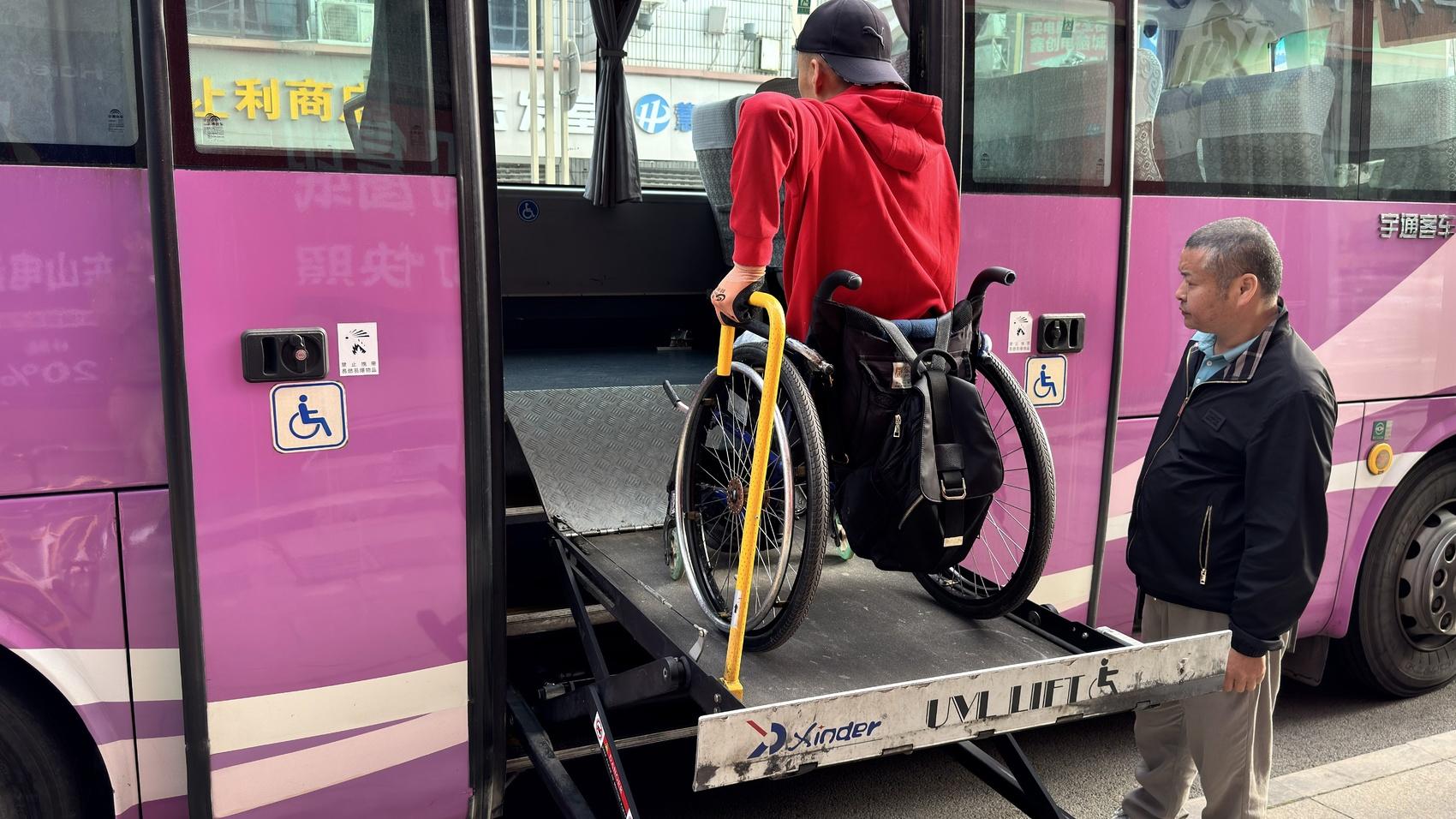 残疾人游客正在体验无障碍大巴(省残联供图)