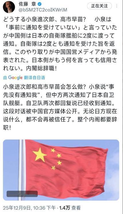 12月10号到目前为止,日本的主流媒体和谈话性节目都开始陆续报道“玉渊潭天”公布的那段录音,清清楚楚、明明白白地呈现了中方向日本通报了航母起降演练的相关内容,也证明了日本官员都在说谎。那么日本的民众和社会舆论,对于这一动向有何反应呢? 12月9日“玉渊潭天”公布的录音,成了搅乱日本舆论的石子,从10号开始,日本各大报纸的头版、晚间的谈话节目全在说这事儿,那段中英双语通报和日方“收到”的回应,把之前防卫大臣小泉进次郎说的“未收到通知”怼得明明白白。 媒体先吵了起来,《读卖新闻》登了报道却绕弯子,说“舰对舰通报不算正式通知”,《朝日新闻》直接追着问内阁,还翻出小泉进次郎没核实记录就开记者会的细节。 谈话节目更热闹,前首相石破茂对着镜头发火,说现在政坛硬要把反对强硬的人当叛徒,简直像上世纪三十年代,话没说完,对面的右翼嘉宾就拍着桌子离场,直播都断了几分钟。 普通民众的反应彻底分成两派,网上不少人还在硬扛,有人说录音是伪造的,甚至挑刺说“日本官员口音不对”,还有人故意混淆搜索雷达和火控雷达的区别,骂那些报真相的媒体“帮中国说话”,这些人在评论区里互掐,有人气不过直接删评论。 但清醒的声音越来越多,社交媒体上“内阁总辞职”的话题挂了一整天,有网友留言说“政客为了讨好右翼,把我们往麻烦里推,谁管过我们的日子”。 北海道的渔民在网上说,最近渔获不好卖,都跟中日关系降温有关,东京免税店的店员也晒出冷清的店面,抱怨游客少了大半。 还有人翻出之前高市早苗内阁炒作“台湾有事”的言论,说现在才明白,那些激进话都是为了转移注意力。 现在日本国会已经要质询小泉进次郎,不少人等着看他怎么圆谎,其实大家争的不只是通报的事,是不想被政客牵着走,就像有网友说的,真相摆在这里,再撒谎,损害的是我们自己的日子。 以上都是个人观点,对此您有什么不同的看法,可以在评论区留言讨论!!!