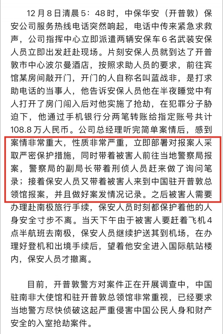 据南非开普敦当地安保公司消息,他们公布“蓝战非遭绑架”一事的部分过程