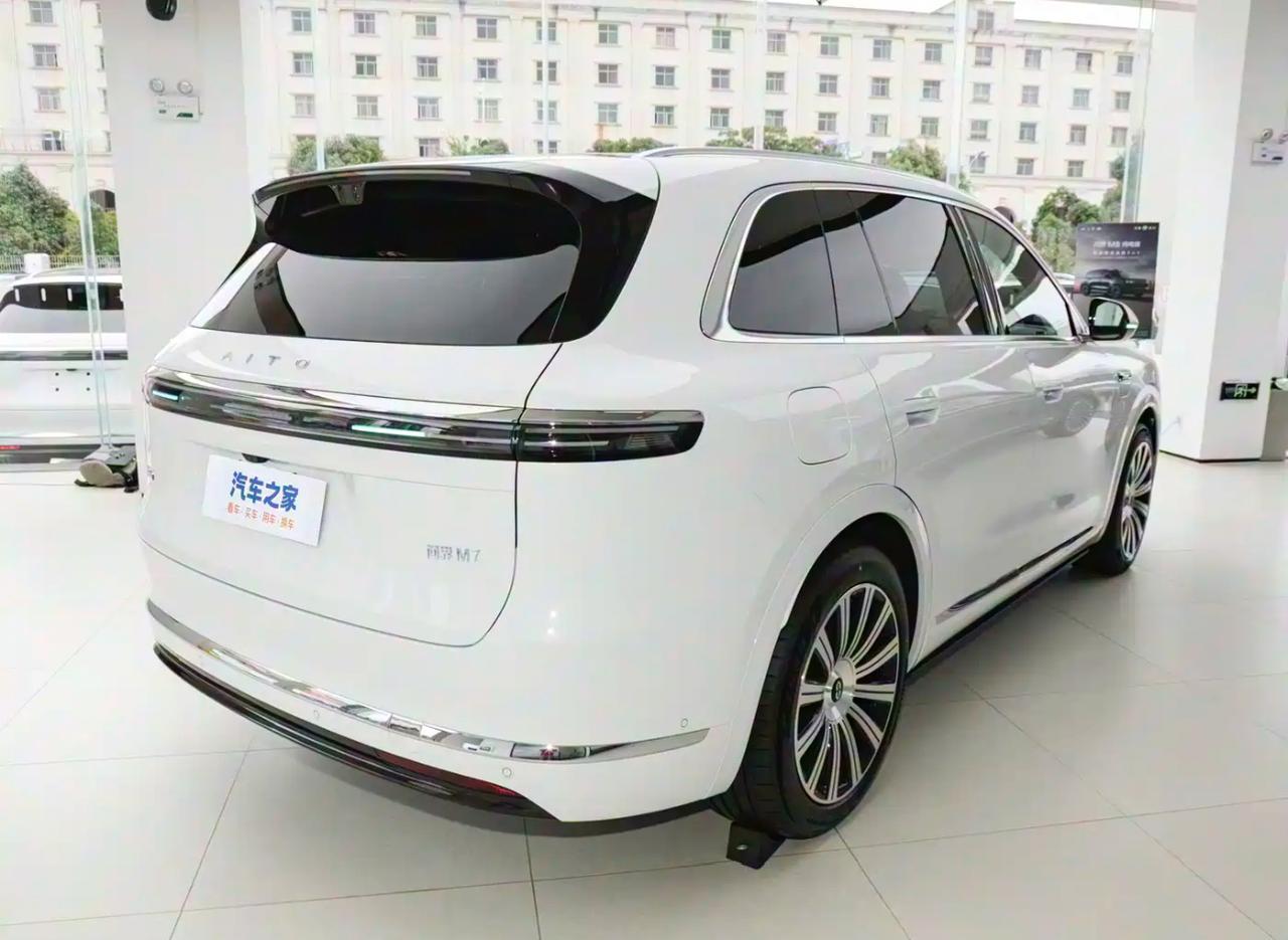 2026款问界M7:技术内核的精炼呈现 2026款问界M7提供增程、纯电两种动力,含5座/6座布局。 车身尺寸5080mm×1999mm×1780mm,轴距3030mm,采用“鲲鹏展翼”设计。 座舱搭载鸿蒙4.0系统,标配15.6英寸2K中控屏。 增程版搭1.5T增程器,CLTC纯电续航最高240km,综合续航1625km。 纯电版基于800V平台,CLTC续航635-710km,30%-80%快充25分钟。 全系标配前双叉臂+后五连杆悬架,高配搭载空气悬架与CDC减振器。 智驾分三级配置,高阶版配双激光雷达,支持华为ADS 4.0无图NOA。 车身高强度钢占比80.6%,标配8安全气囊,电池通过IPX9K防水测试。 官方指导价24.98-37.98万元,推出Pro+、Max、Ultra三个配置等级。 (图片来源:汽车之家)