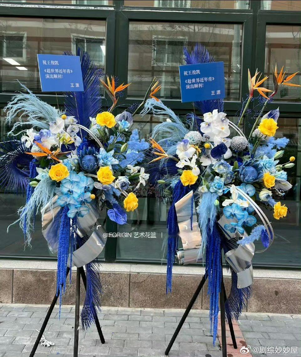 王源、易烊千玺都给王俊凯首部话剧送了花篮,还都选了蓝色的色调并委托花店认真搭配!