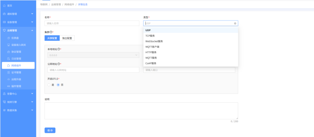安全防护:通过设备接入网关、证书管理、网络组件等功能,实现“一机一密”“一型一密”认证,保障设备接入与数据传输安全。