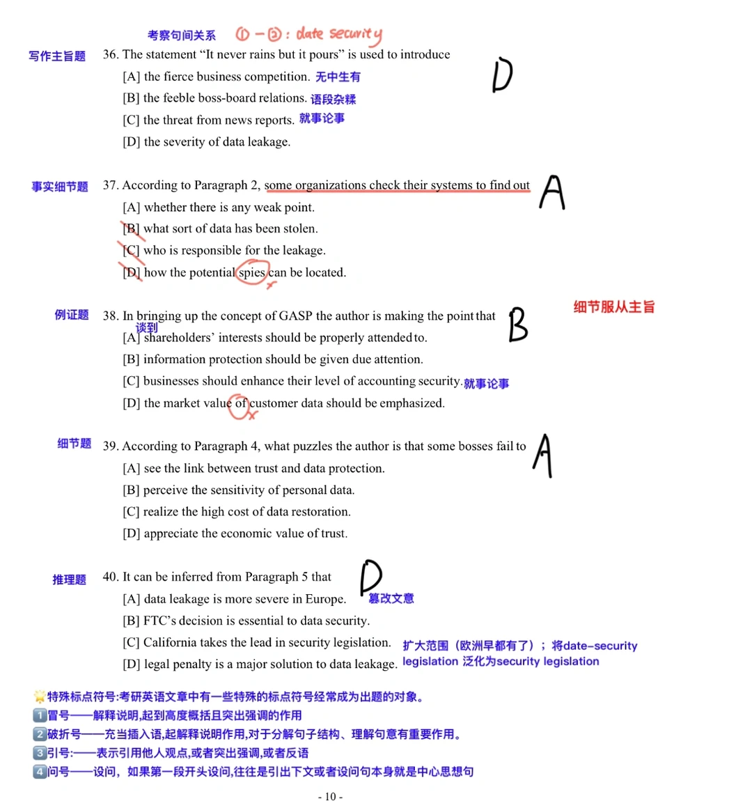 🌟特殊标点符号:考研英语文章中有一些特殊的标点符号经常成为出题的对象。