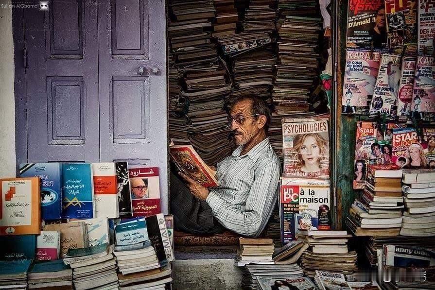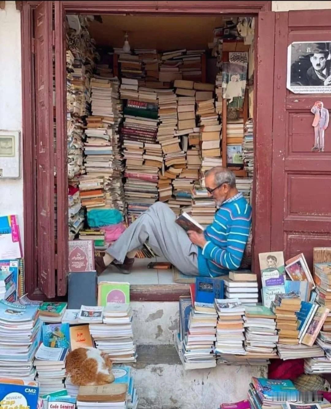 72 岁的穆罕默德·阿齐兹是世界上被拍摄次数最多的书商,他居住在摩洛哥拉巴特。 阿齐兹六岁时成了孤儿,生活艰辛;由于课本太贵,他甚至没能完成高中学业。1963年,15岁的他开始了自己的书商生涯,当时他把九本书堆放在树下。 如今,他的书店销量已达数千册,他每天都沉浸在书海之中,如饥似渴地阅读着书中的故事。他每天花六到八个小时读书,除了吃饭、祈祷、抽烟和接待顾客之外,其余时间都用来在街区里四处走动,寻找书籍,以便日后在书店里陈列和出售。 他说这是他对童年和贫困的报复: “我读过4000多本阿拉伯语、法语、英语或西班牙语的书,这意味着我体验了4000多种人生。每个人都应该有这样的机会!我每天只需要两个枕头和一本书就能享受生活。”