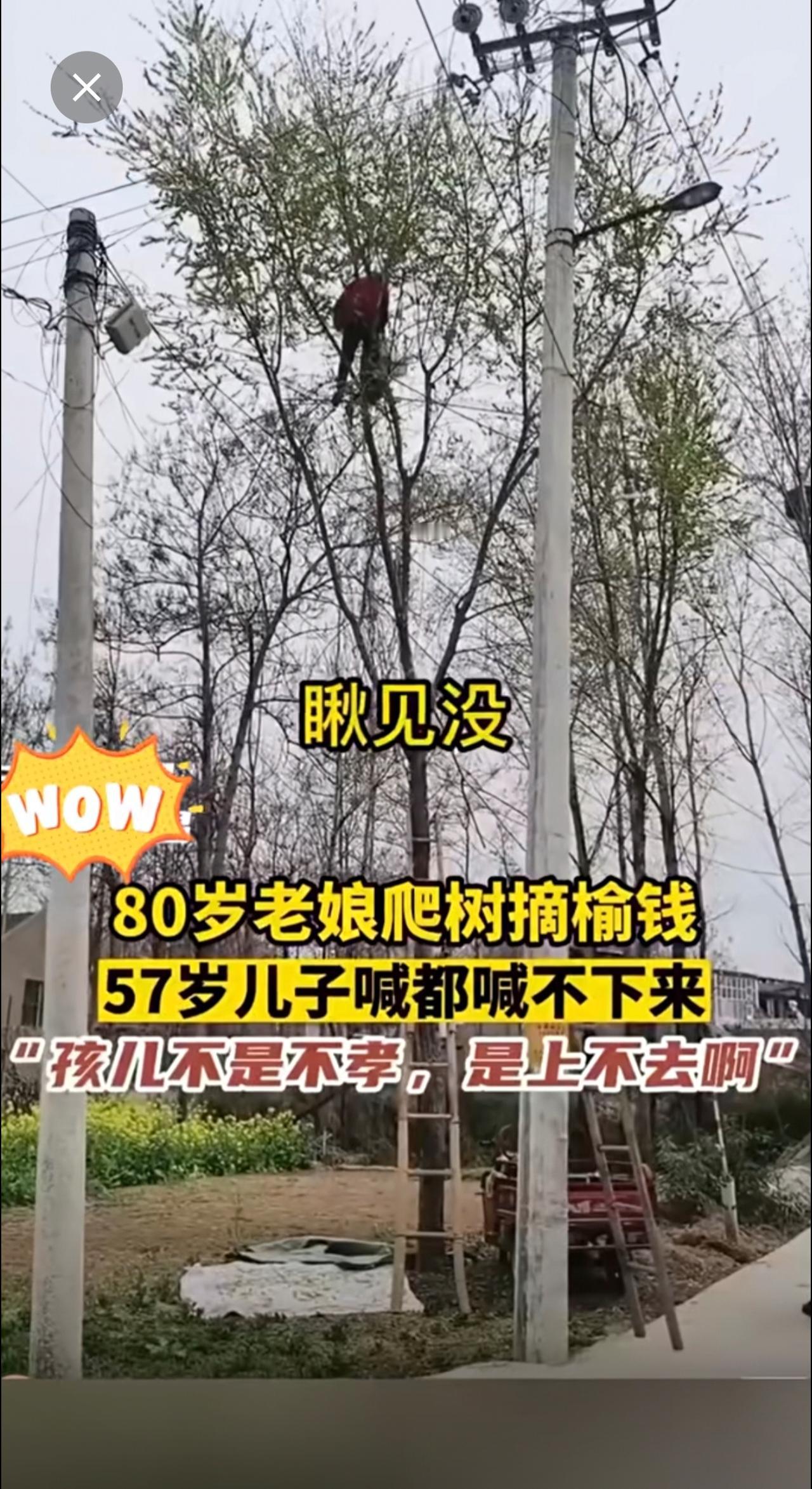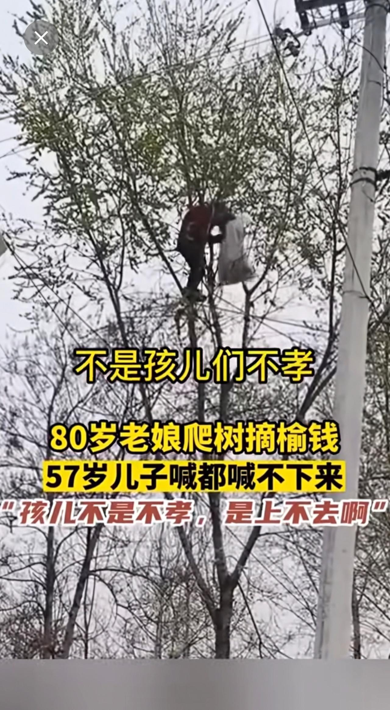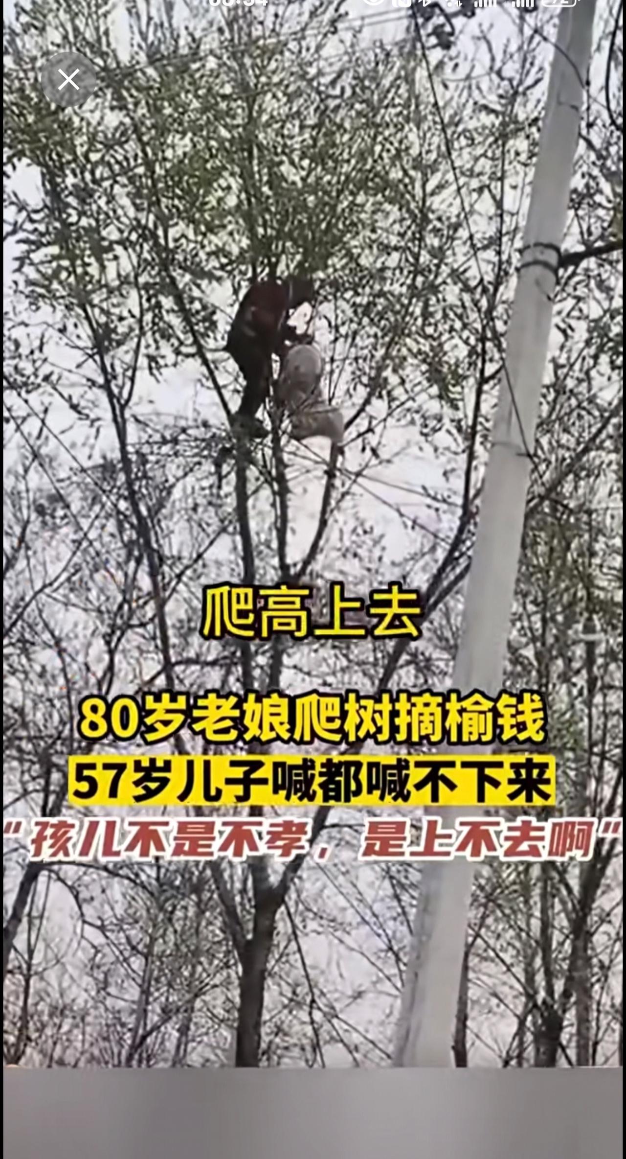 80岁老娘爬树摘榆钱,57岁儿子喊都喊不回来!搞笑 老年生活