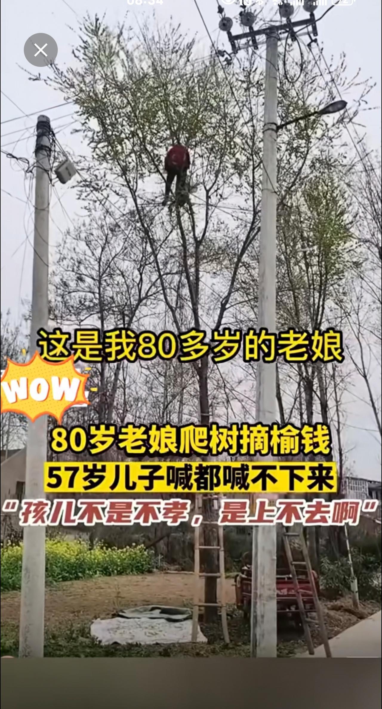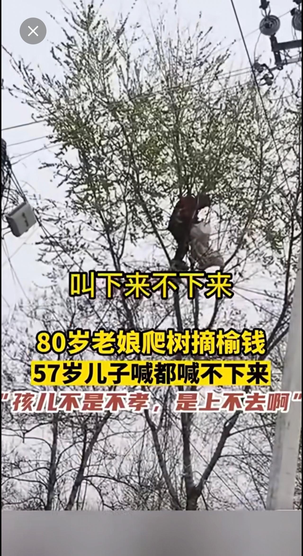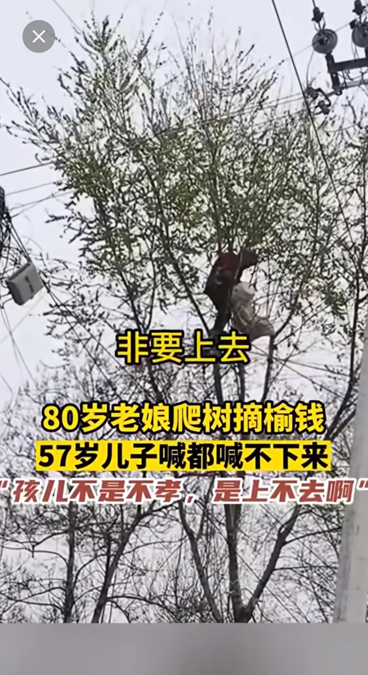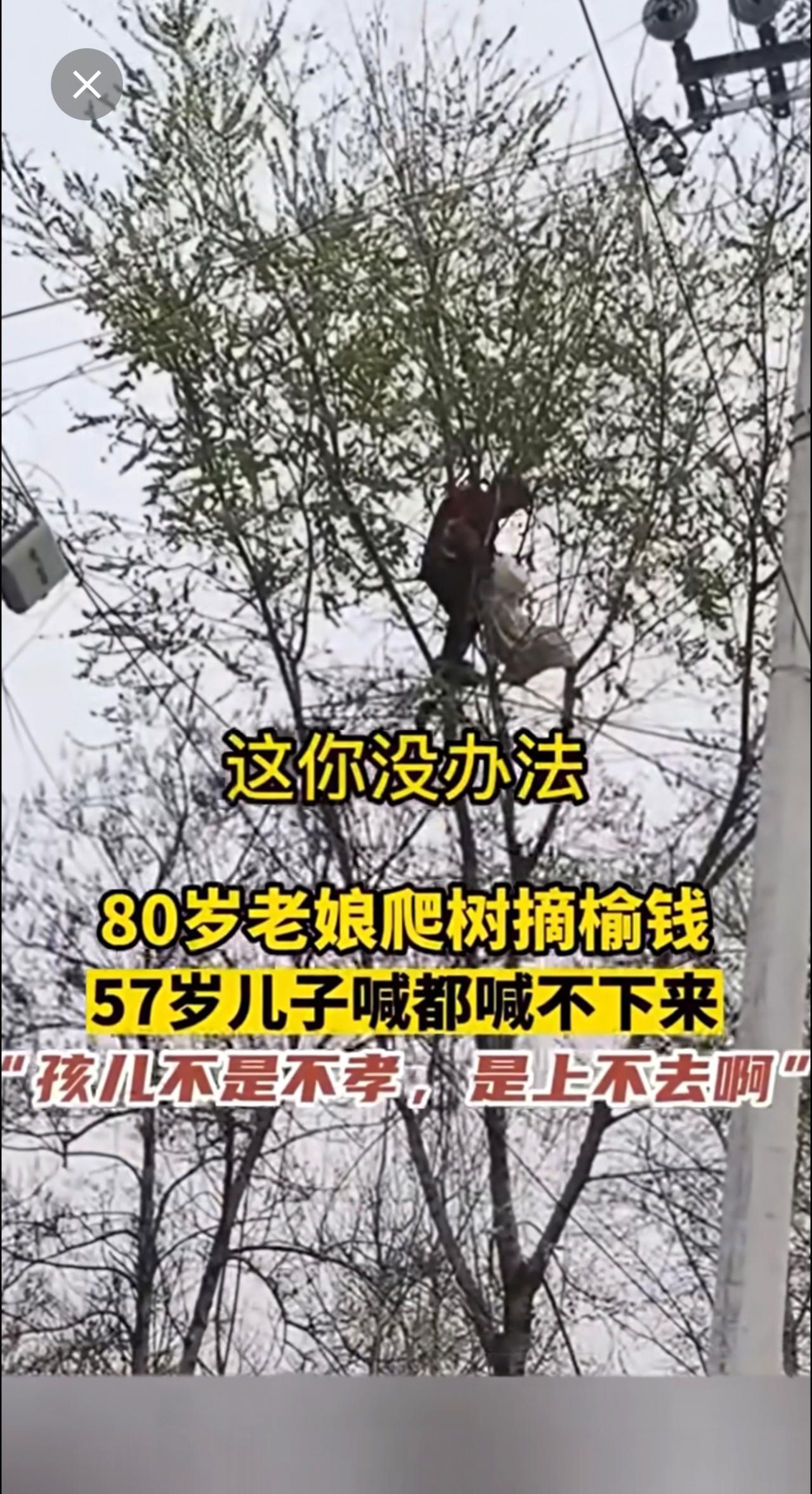 80岁老娘爬树摘榆钱,57岁儿子喊都喊不回来!搞笑 老年生活