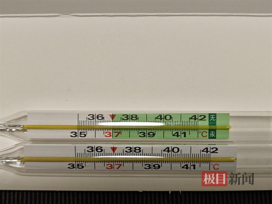 华中地区一家三甲医院的医生告诉极目新闻记者,他们医院主要是使用水银体温计和电子体温计,目前还没有用到无汞玻璃体温计。实际工作中,电子体温计在不同温度环境下会出现有误差的情况,他总体感觉,水银体温计的测量精确度会更高一些。