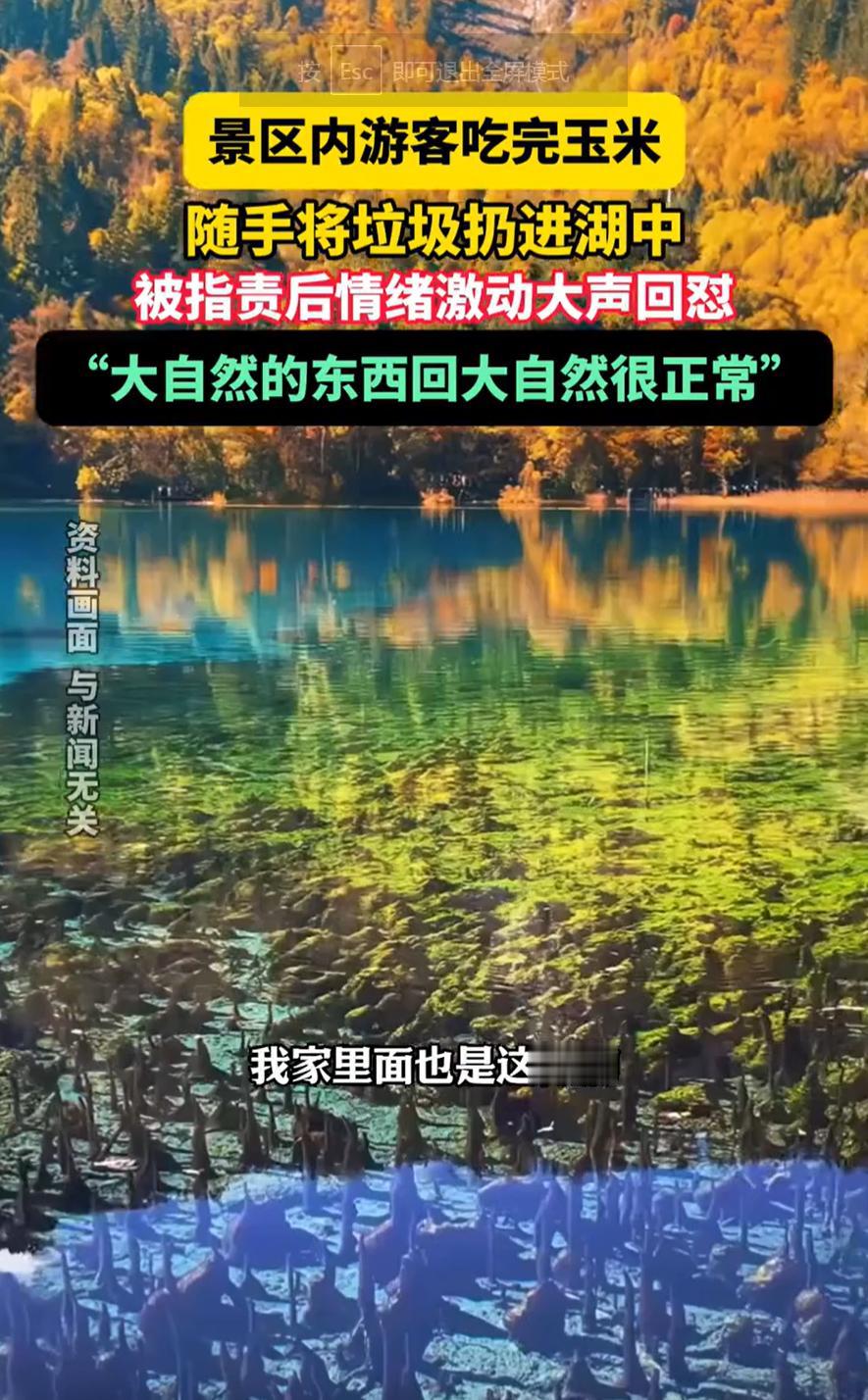 “丢人现眼!”四川阿坝,一男子去九寨沟游玩,没想到,他却把吃剩下的玉米直接扔到了水里,有游客看到后上前指责,认为他这样做污染了环境,可男子却认为自己没错,还情绪激动的喊道:大自然的东西回大自然很正常!网友:胡说八道 视频显示,男子在坐地上,面对游客的会污染环境的指责,他义愤填膺地回应说:如果玉米有污染,那为什么要卖有污染的东西给我吃?说罢,他还给自己一个耳光 随后,男子再次说道,他认为自己做的没错,大自然的东西就应该回归大自然,他在家里面也是这样做的 不难看出,男子有一套自己的逻辑,他压根就没觉得自己做错,反而认为其他游客是在多管闲事,但网友们却是一边倒的指责 有网友说:不是东西有污染,而是九寨沟水体分解能力有限,你扔一根他扔一个,就是大江大河也没那么容易分解掉 还有网友说:一个地方如果大家都不扔,估计就没人扔,一个扔了,就会有下一个,你扔个玉米粑,他扔个香蕉皮,又来个扔瓜子皮,慢慢的就会成为垃圾场 不得不说,网友的观点确实说在点上了,九寨沟的水为什么那么清澈?正是因为这里的水体纯净度高,微生物和分解系统相对简单。突然投入大量外来有机物质,会打破原有的生态平衡,导致藻类过度繁殖、水质变差。一根玉米对一条大河可能不算什么,但对九寨沟这样的特殊水体,影响是实实在在的 或许大哥不是坏,他只是以为自己和自然相处的方式放在哪都合适。可九寨沟不是他家院子,环境规则不是他个人习惯,它需要大家一起守着 真正的文明旅游,不只是不扔塑料袋、矿泉水瓶,也包括对自己手中每一片果皮、每一颗瓜子壳负责。美景需要每个人的珍惜,而这份珍惜,就体现在这些细微的选择里