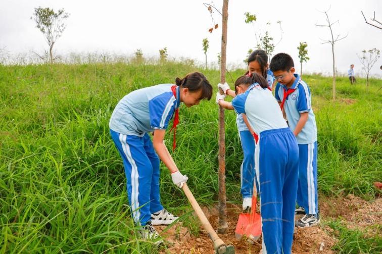 广东还将义务植树与绿化重点工程、红色教育、生态建设等深度融合,积极唱响“我为广东种棵树”主旋律,通过情感动员推动移风易俗,以“恩爱”树、“成才”树等赋予植树情感价值,结合体育盛事开展“我为全运种棵树”等植树活动,有效提升民众对义务植树的认知度和参与热情。例如,茂名大力倡导“有喜事来种树”“植树过年例”,动员民众种下“年例树”超1.4万株。肇庆市四会县下㘵村创新的“喜事林”模式,将村民生活中的嫁娶、升学等喜事与植树纪念结合,实现了生态与乡风的同步美化。梅州当地的“有喜事来种树”“美家美户”“侨心林”等活动开展得有声有色。各部门、单位、学校等将支部、工会活动与义务植树活动结合,推进党建红与生态绿深度融合。