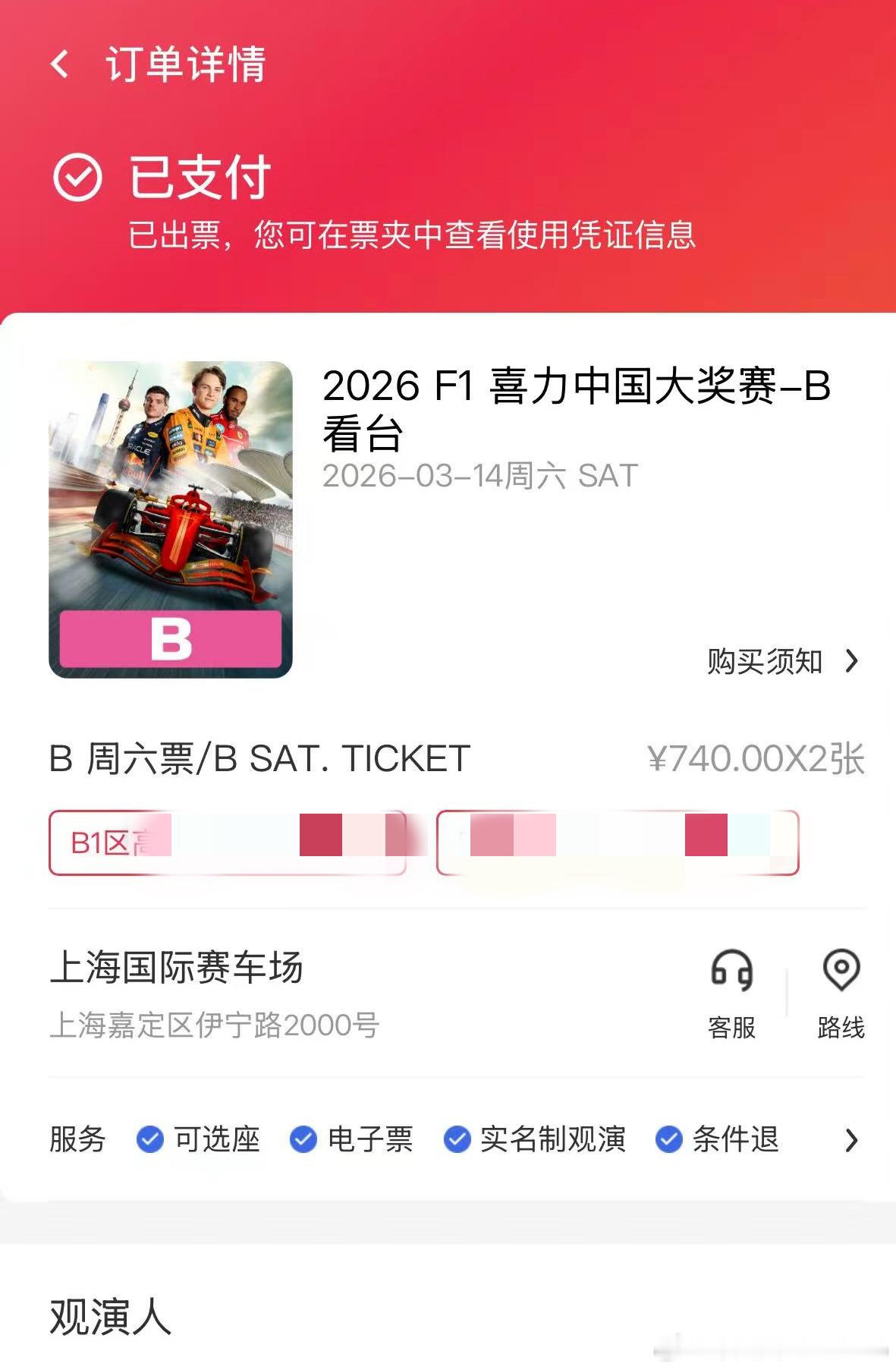 2026年F1中国大奖赛门票🎫抢到了两人分工,一个人抢A一个人抢B,最终拿下了