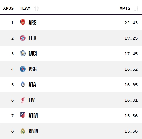 直播吧12月11日讯欧冠结束联赛阶段前6轮的争夺,数据机构Opta预测了欧冠联赛阶段的最终排名。