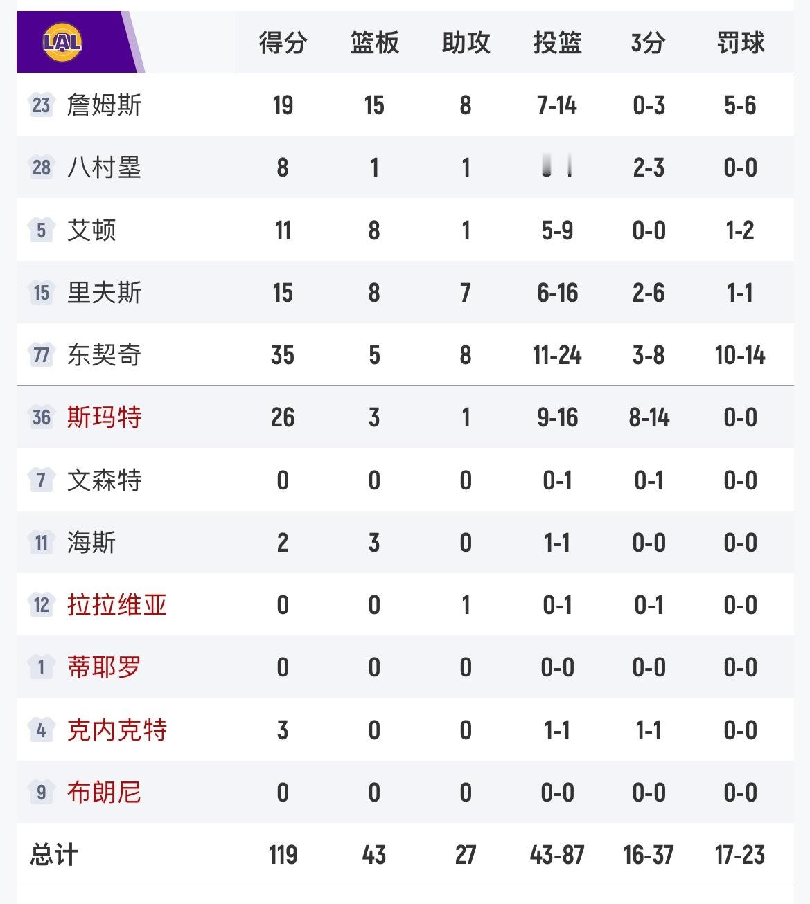 湖人就是对角色球员太仁慈了,看看人家雷霆首发5虎,SGA切特出手断档剩下卡森