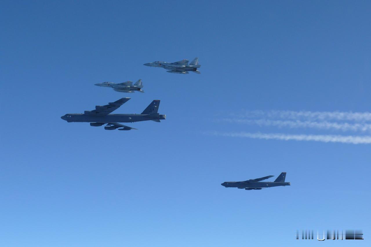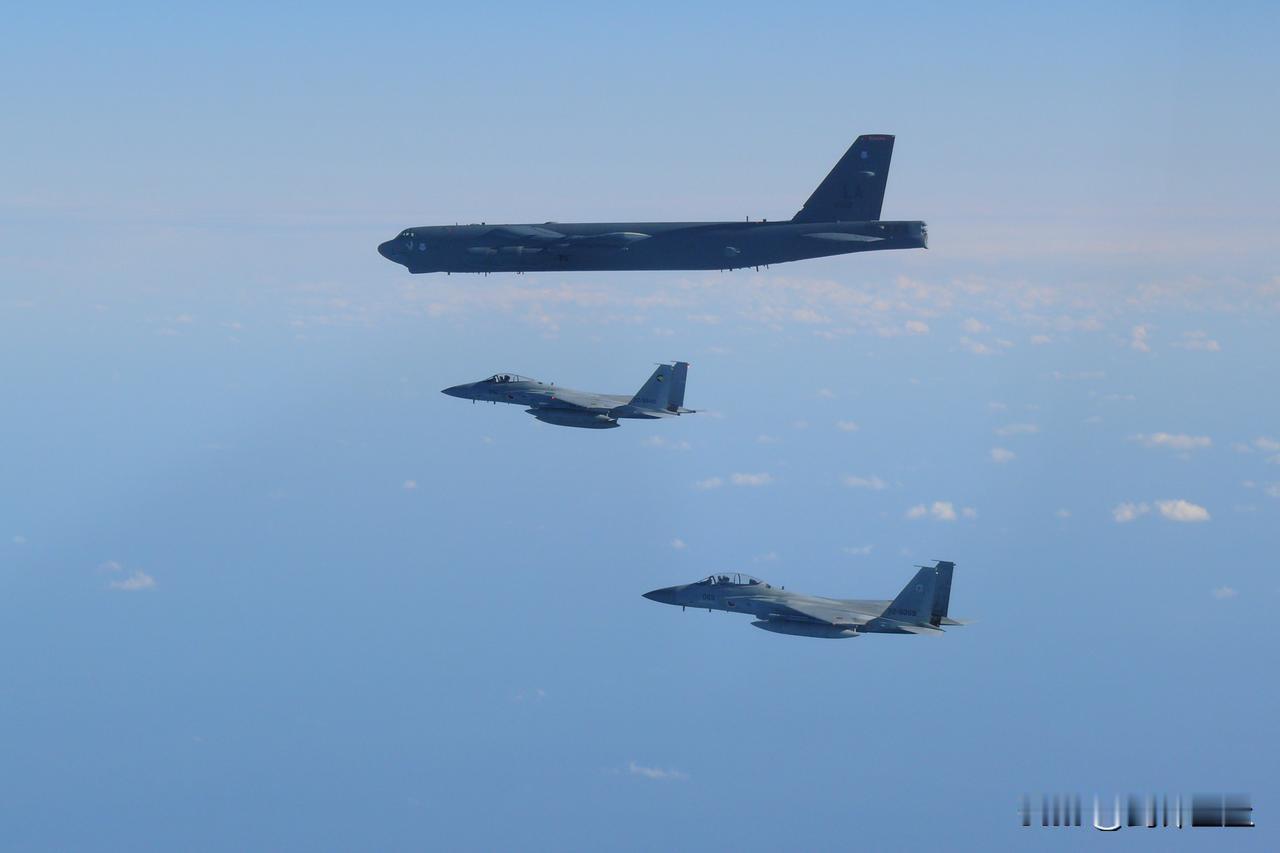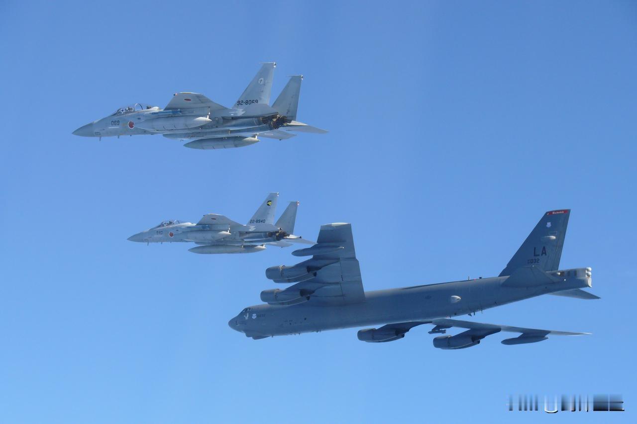 中俄轰炸机刚刚联合巡航完成 为了安抚惊吓过度的小日子 美军派了几架B52和日本空自也搞了个联合训练 这架势像极了狐假虎威的狗子