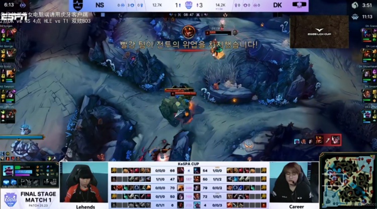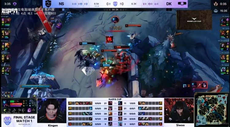 [8:35]NS拿下三虫,Sponge赵信被留开大反开,Lehends牛头也跟进结果吃了个皇子大牛头没了!Lucid皇子追死Sponge赵信,这波DK打了个0换2!