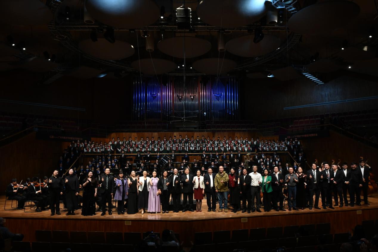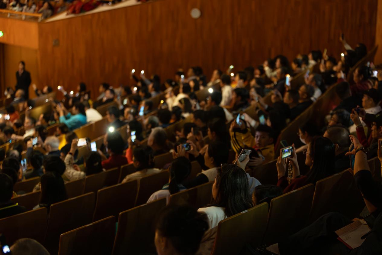 音乐会在曲目《灯火里的中国》中迎来情感高潮。作曲舒楠的深情旋律经张超衡老师重新编配,由少年演奏家们奏出对家国的炽热祝福;现场师生自发打开手机闪光灯,随乐声摇曳,汇成一片星海。最后,全场合唱《广州市育才中学校歌》,八角楼、梅花村等校园意象在歌声与字幕中闪现,为音乐会画下温馨句号。