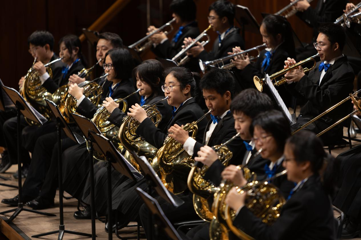 整场音乐会以“红韵”为主线,分上下半场共呈现14首作品,既有赓续红色血脉的《歌唱祖国》《红旗颂-阅兵版》,也有洋溢青春气息的《卡农》《龙猫组曲》;既有西方经典《降E大调协奏交响曲》《魔王之舞》,也有岭南情怀的《灯火里的中国》和两度奏响的《广州市育才中学校歌》。