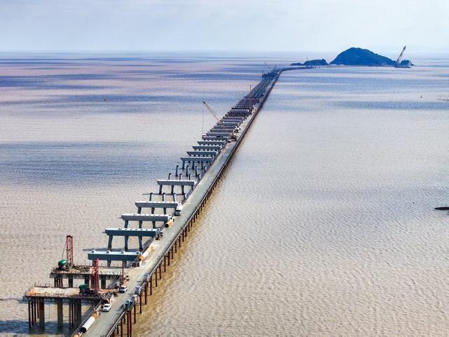 12月10日,台州湾新区东侧海域之上,一条总长超5000米的钢铁栈桥正加速向西侧的西廊岛延伸,岛岸联通近在眼前。
