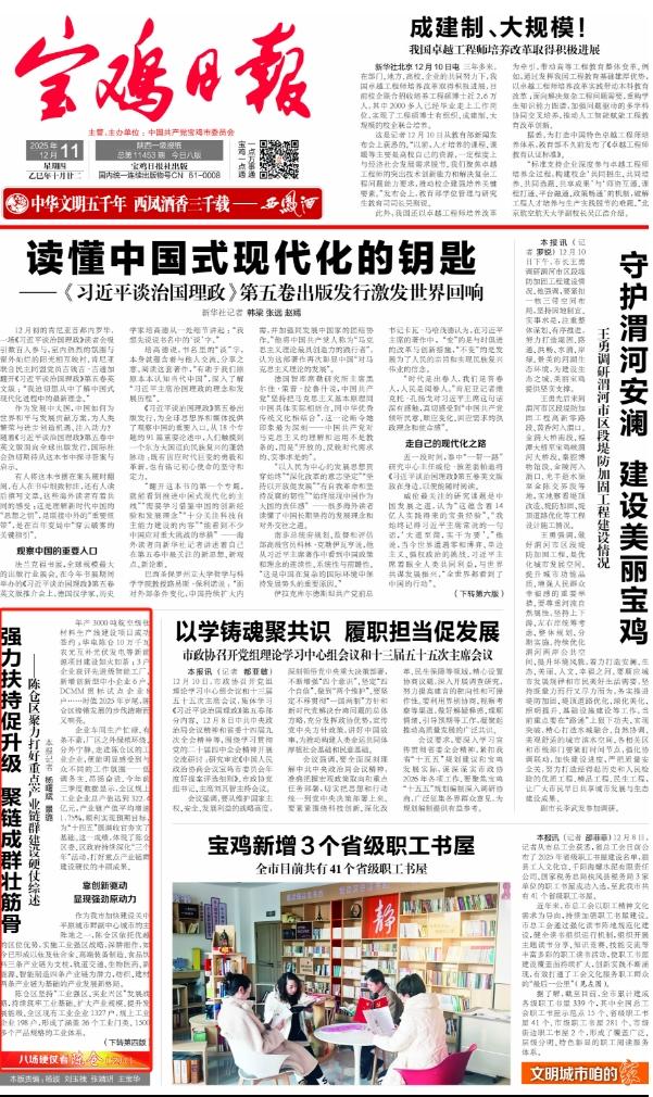 年产3000吨航空级钛材料生产线建设项目成功签约;华电陈仓10万千瓦农光互补光伏发电等新能源项目建设如火如荼;3户企业获评先进级智能工厂,新增创新型中小企业6户、DCMM贯标试点企业8户……时值2025年岁尾,陈仓区铿锵发展的步伐清晰而又响亮。