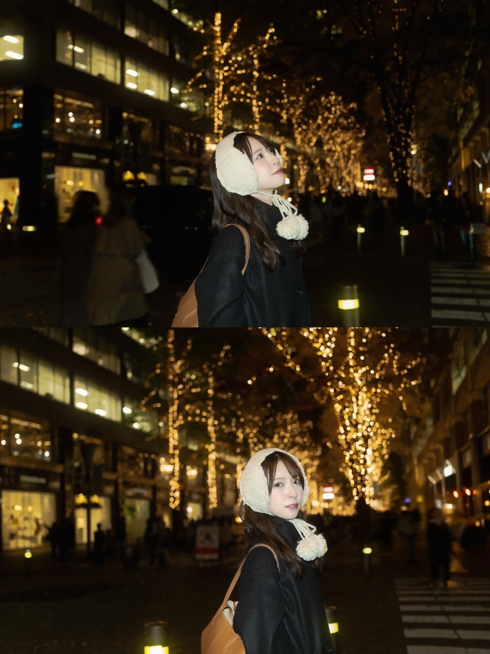 みく「先日、桜と一緒にお出かけして、キラキラをたくさん観てきたんです~~。ツリーもとっても可愛かったの🎄。冬の外ってすごく寒いのになぜか歩きたくなるのは、やっぱり街中の至る所に綺麗な景色が広がっているからだと思うんだ~。まだまだ色々なツリーを観に行きたいし、他のイルミネーションにも行ってみたいな🪄。街がキラキラしていて、あたたかい食べ物も最高に美味しくて、冬って最高だ、、!さむいけど!❄️。」