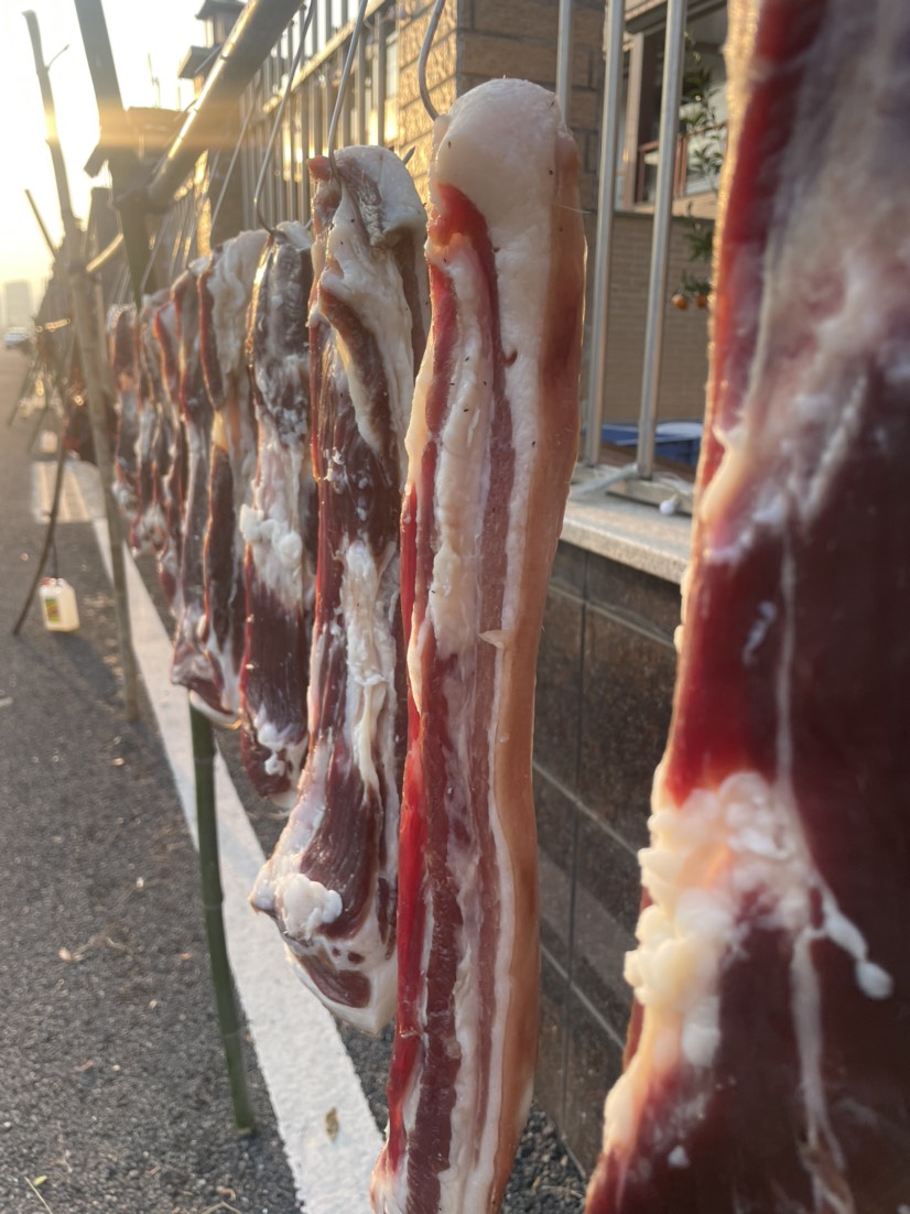 12月10日,橙友@90后庄主在橙友圈晒出了自己做的农家酱货,有酱肉、咸肉、酱鸭、香肠、鳊鱼干、白条干、猪耳朵等,在阳光下一晒,非常诱人: