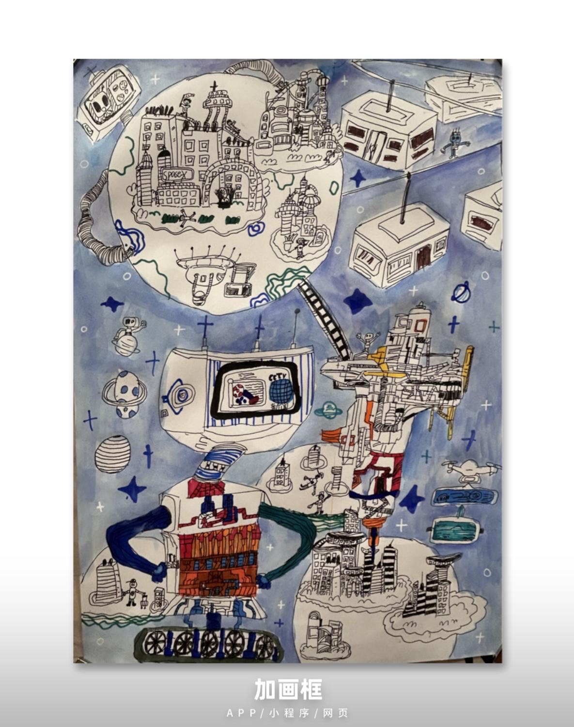 橙友j8NLMW分享的也是#橙柿画报大赛#参赛作品,不过,这些作品都是她的学生画的。她是一家少儿培训机构的美术老师: