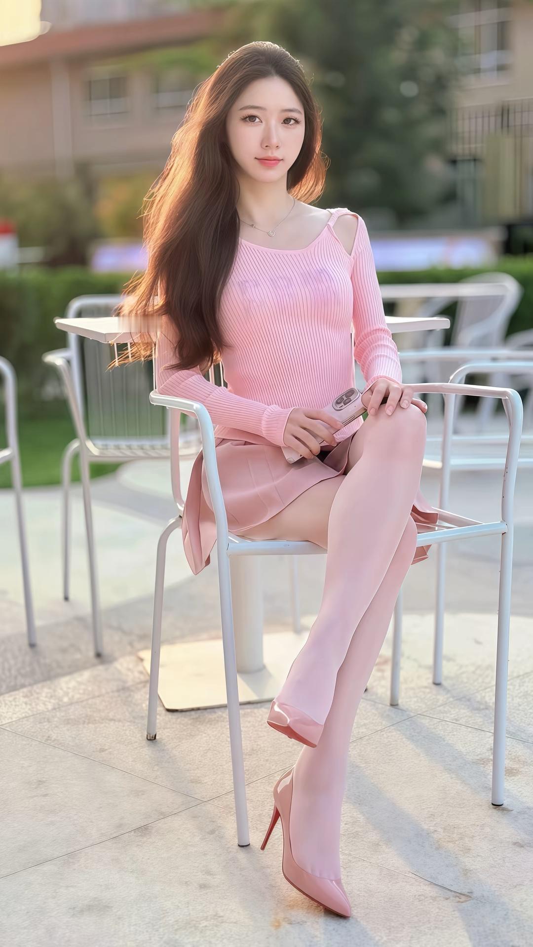 粉色JK裙,粉色高跟鞋,粉色上衣,性感妩媚动人心弦