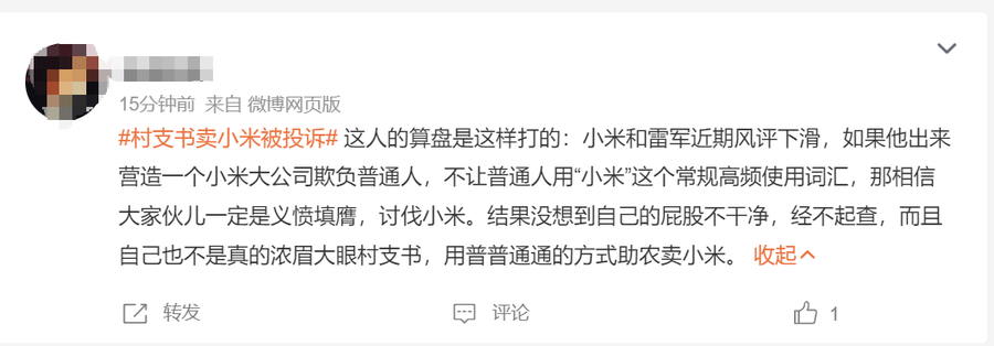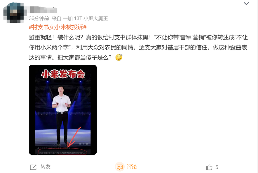 这番话戳中了不少人的共情点,#小米投诉村支书助农#话题直接冲上热搜,不少人吐槽小米“格局太小”“不近人情”,甚至脑补出“资本打压民生”的戏码。但很快有网友扒出原视频,真相一出来,大家都看傻了——小米投诉的根本不是“卖小米”,而是他明晃晃的碰瓷营销+恶意蹭热度!