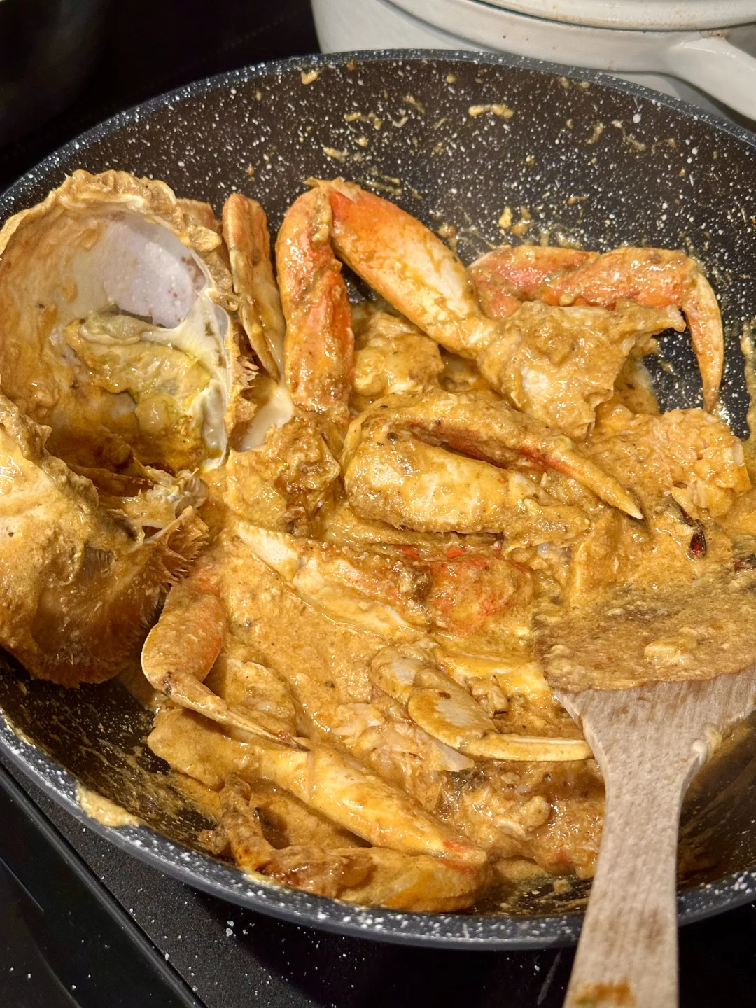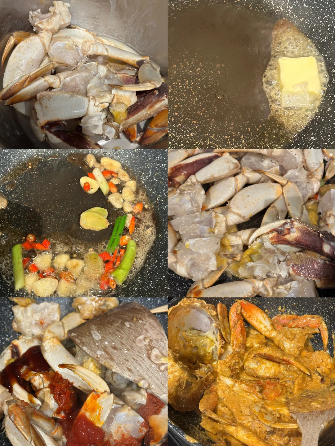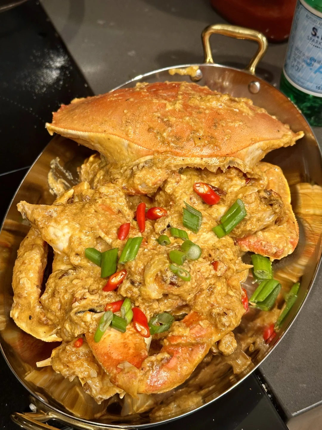 这次朋友来家里,做了个香辣咖喱珍宝蟹。之前其实用罐装蟹肉做过类似的版本,已经觉得够好吃了,但这回用鲜活全蟹做,味道再上一个台阶!