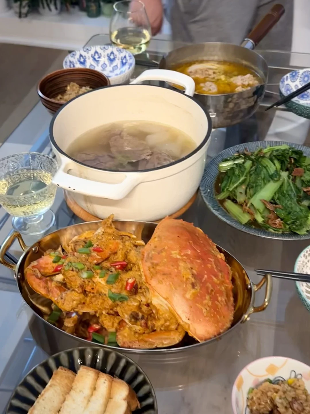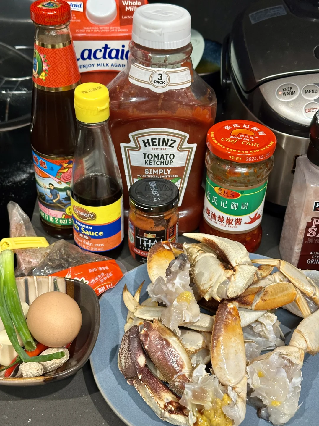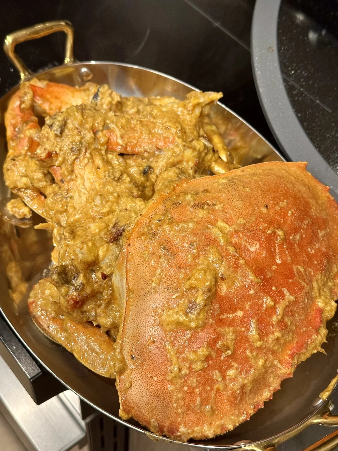 这次朋友来家里,做了个香辣咖喱珍宝蟹。之前其实用罐装蟹肉做过类似的版本,已经觉得够好吃了,但这回用鲜活全蟹做,味道再上一个台阶!