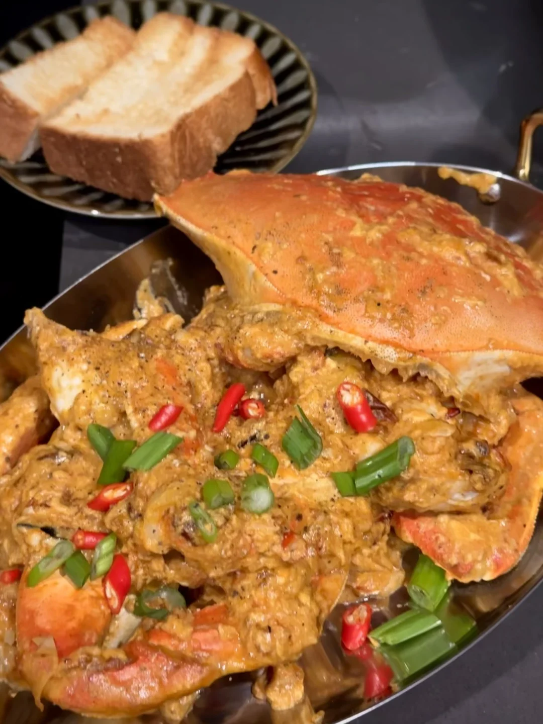 香甜浓郁的咖喱汁里有了蟹黄的参与,变得更醇厚鲜美。一边嗦着蟹壳上附着的酱汁,一边啃嫩嫩的蟹肉,特别美滋滋。盘底的酱汁也绝对不能浪费,下饭一绝,我还搭配了烤脆的吐司,这等清盘方法意大利人看了都直点头~