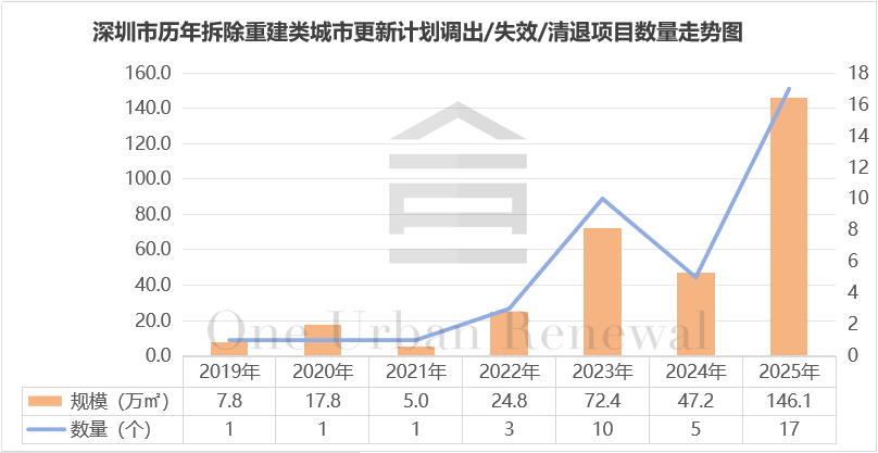 2019年底到2025年12月8日,深圳已有38个城市更新项目被计划调出、失效或清退,涉及拆除范围约321万平米。